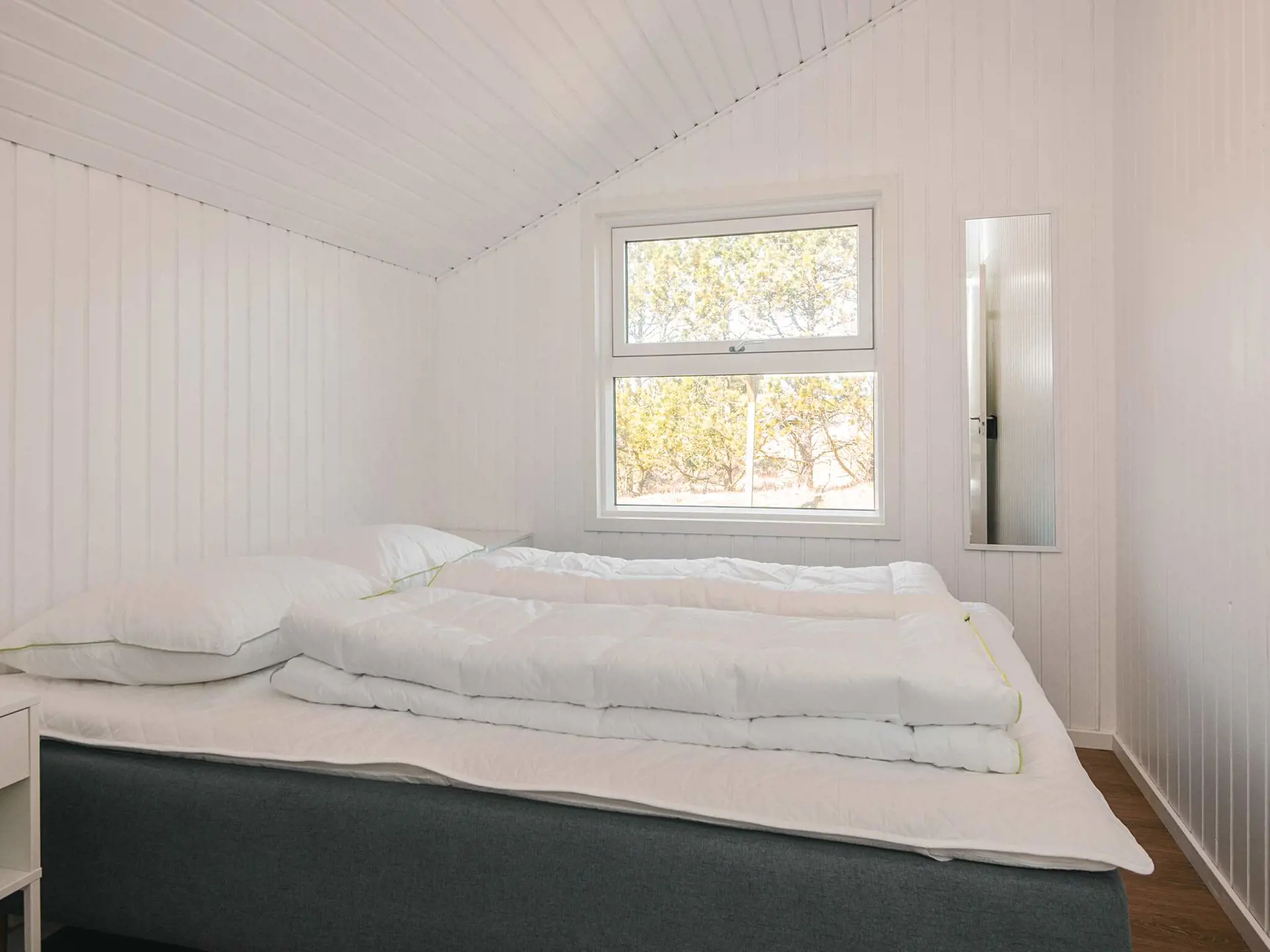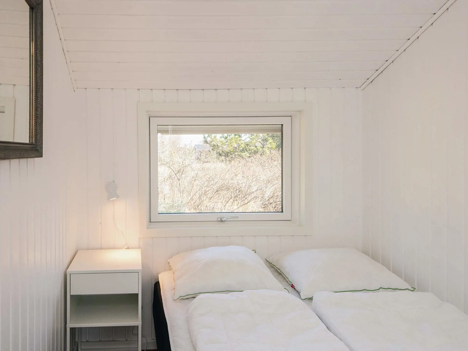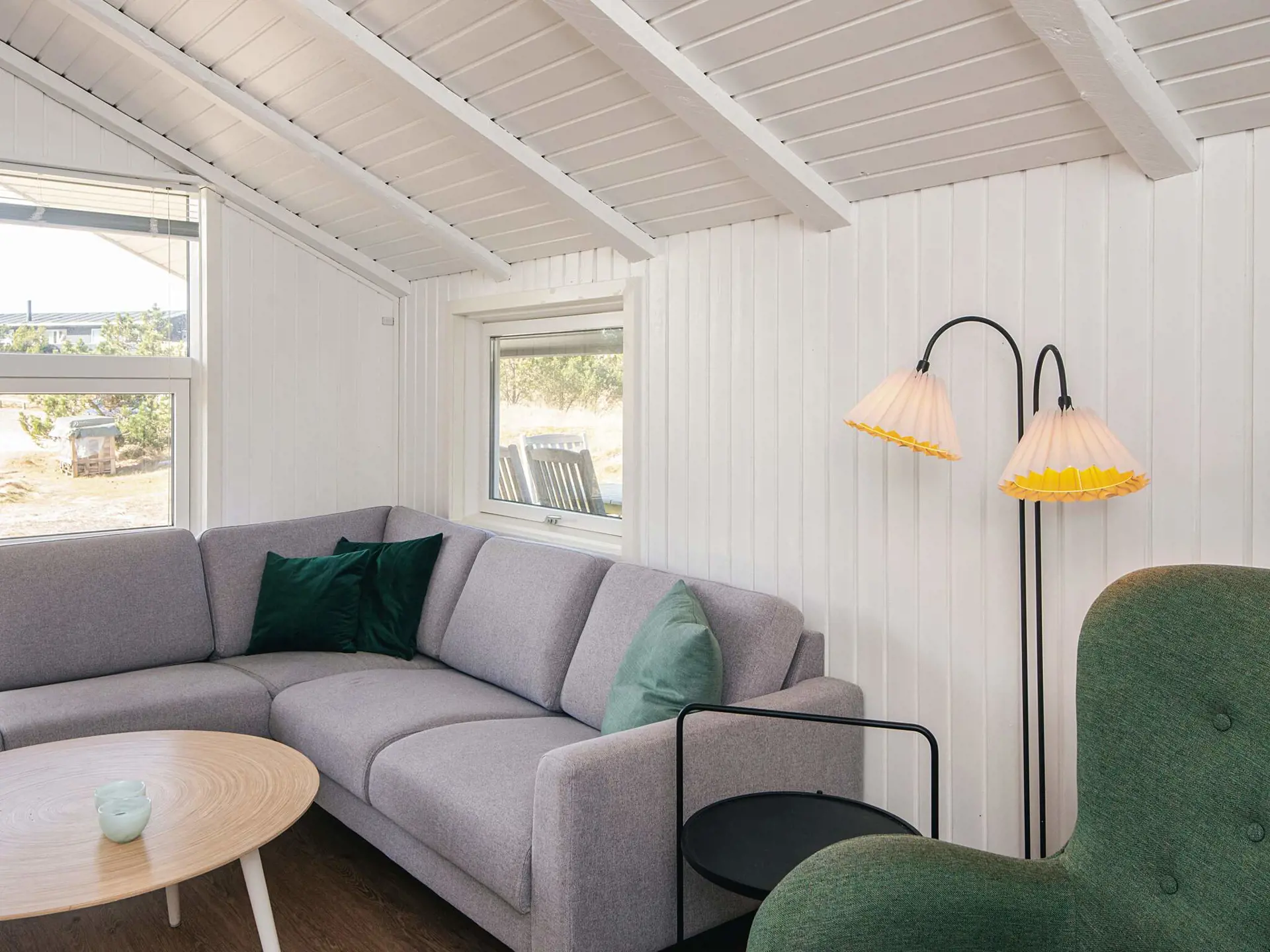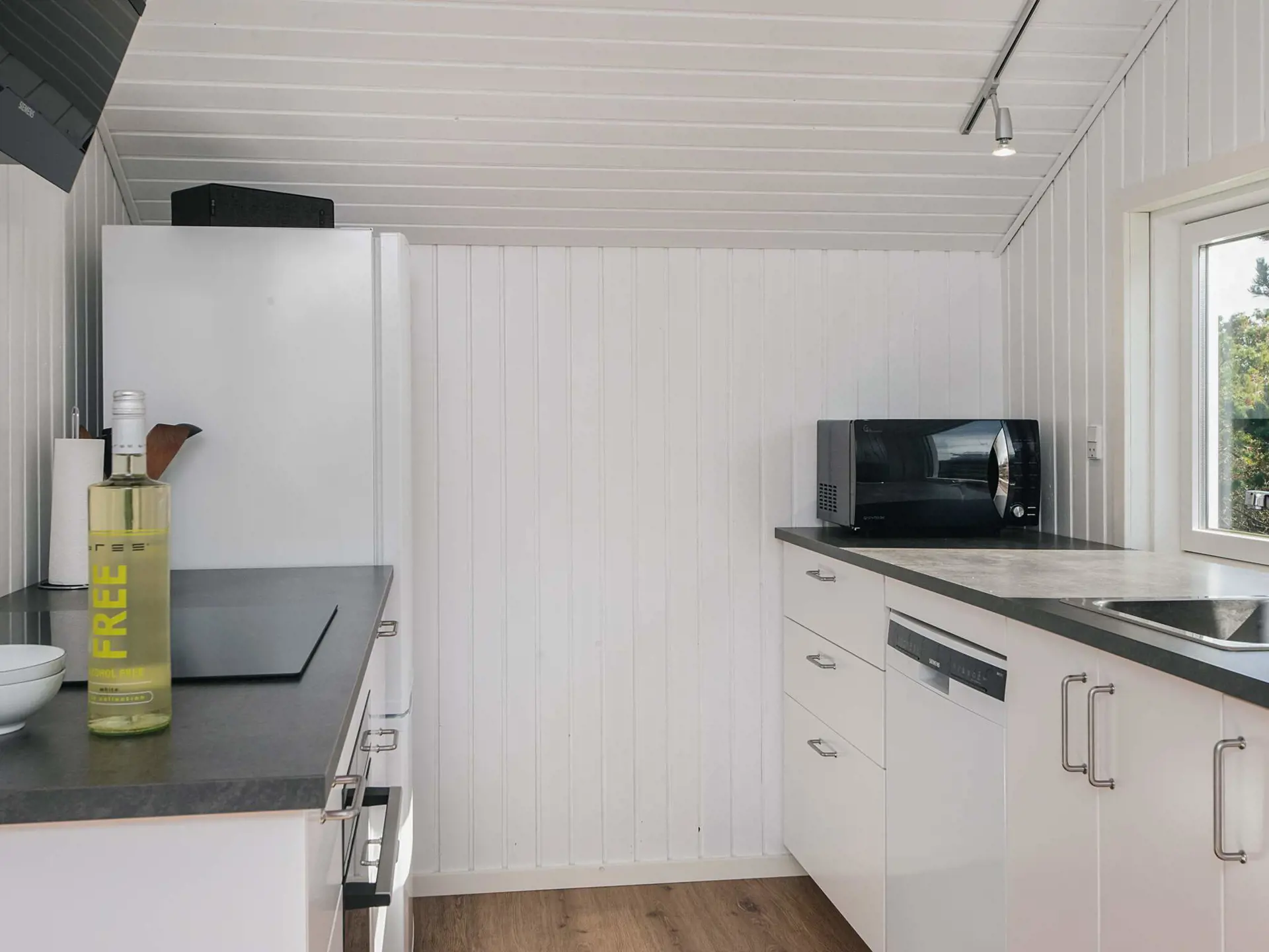 Im Inneren präsentiert sich das Haus hell und einladend mit einer offenen Verbindung zwischen Küche und Wohnzimmer, die einen natürlichen Treffpunkt während des Urlaubs schafft. Der Holzofen sorgt an kühleren Tagen für zusätzliche Gemütlichkeit, während die Wärmepumpe das ganze Jahr über für eine angenehme Temperatur sorgt. Im Wohnzimmer befindet sich außerdem ein Smart-TV.