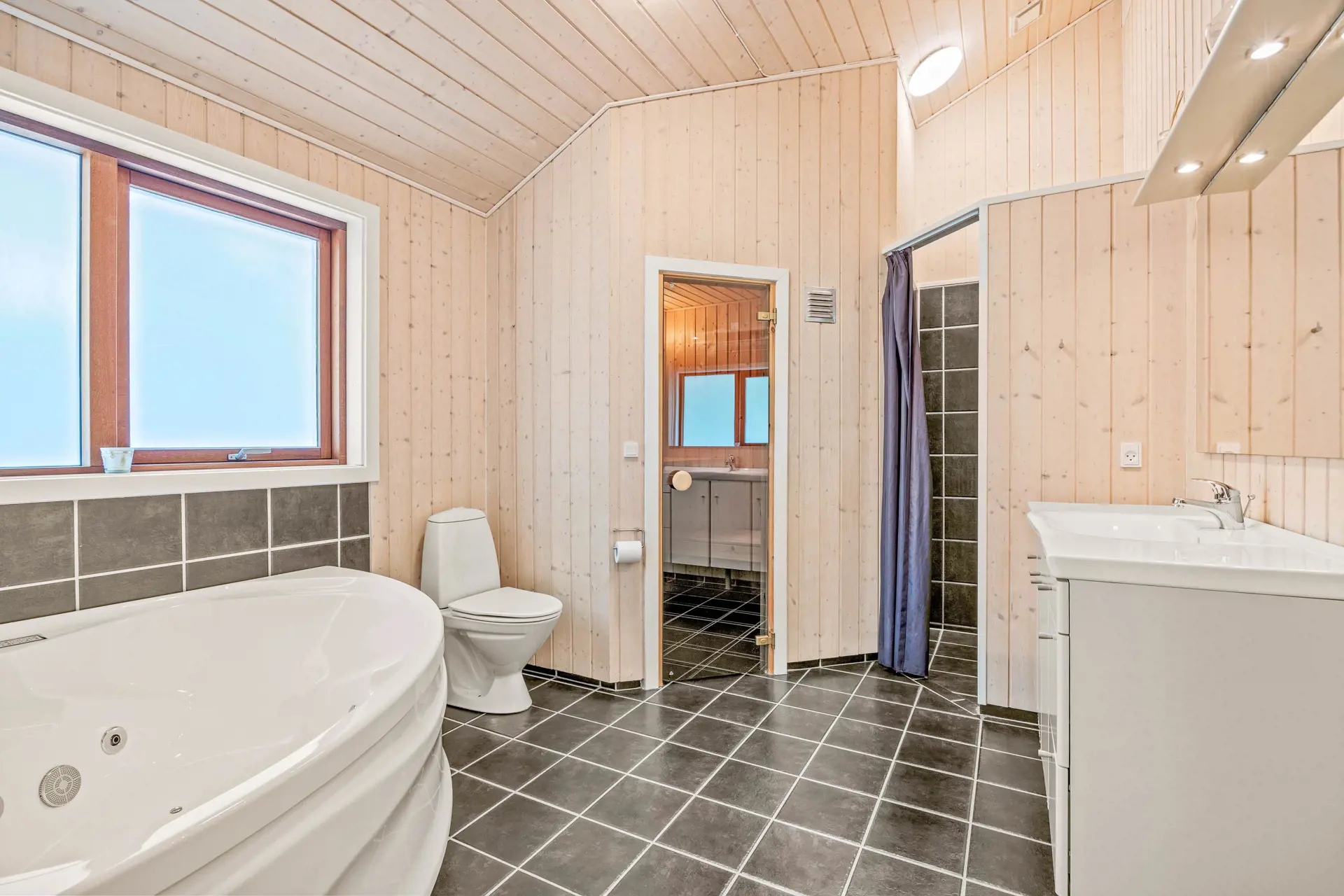 Wenn sich der Tag dem Ende neigt heißt es, ab in die Sauna und anschließend in den Whirlpool. Beide Bäder sind mit je einem Whirlpool ausgestattet und selbstverständlich auch mit einer Fußbodenheizung. Im großen Badezimmer befindet sich eine schöne Sauna, die zum Entspannen einlädt.