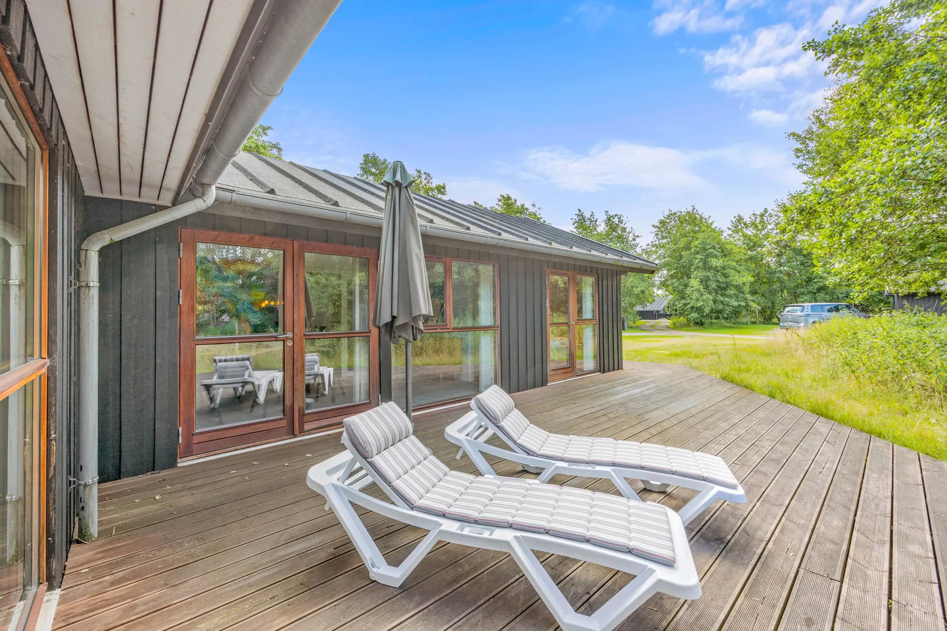 Das Ferienhaus im Skovly 13 liegt auf einem großen Rasengrundstück mit Bäumen und Sträuchern, die das Ferienhaus von 3 Seiten umgeben. Hier erwartet euch eine schöne Terrasse, die geschützt und teilweise überdacht ist. So findet jeder immer ein gemütliches Fleckchen. Dafür stehen euch Gartenmöbel und Liegestühle zur Verfügung. Für ein leckeres BBQ gibt es einen Grill am Ferienhaus.