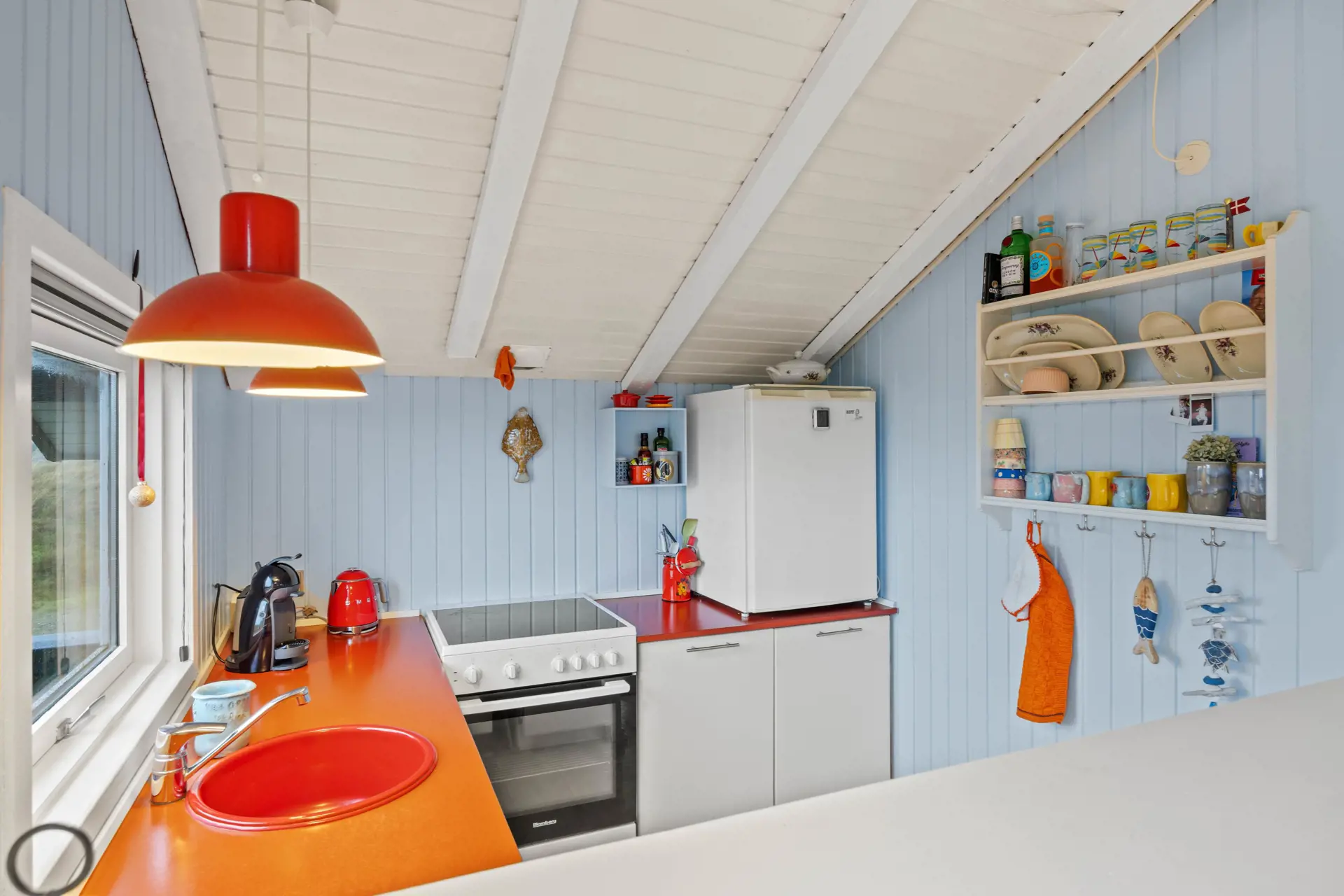 Mit einer Wohnfläche von 69m2 eignet sich das Ferienhaus perfekt für alle, die einen entspannten Aufenthalt in naturnaher Umgebung suchen. Die Adresse Norges Fjelde 40 wird schnell zu einem Ort, an dem ihr euch wohlfühlt und an dem ihr unbeschwerte Urlaubstage genießen könnt. Das Herz des Ferienhauses ist der Wohnbereich, in dem euch ein Kaminofen erwartet, der an kühleren Tagen eine angenehme Wärme verbreitet und für eine gemütliche Atmosphäre sorgt.