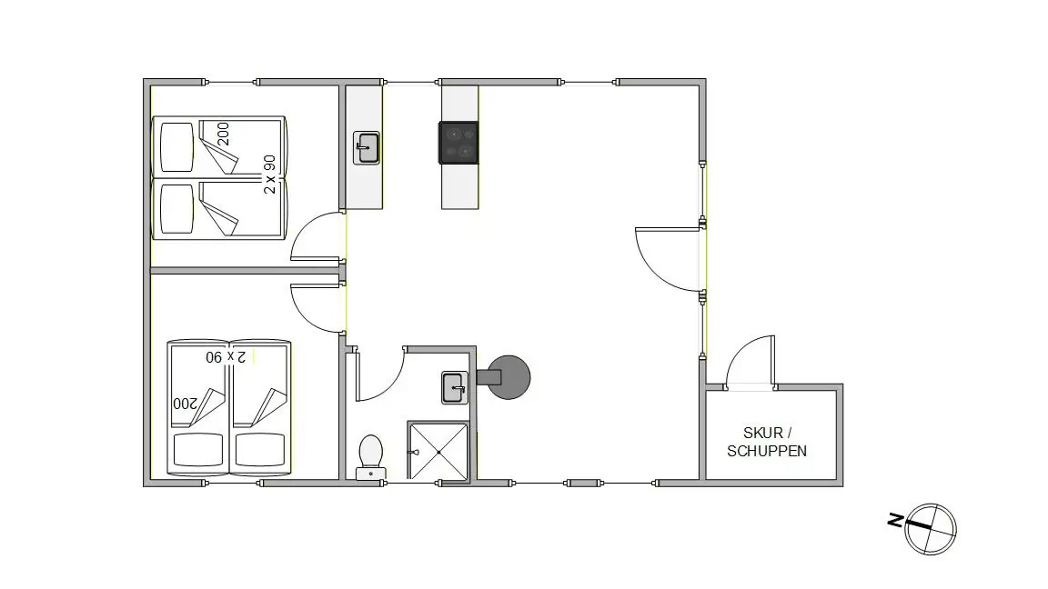 Im Nørre Meldbjergdal 1 erwarten euch 2 gemütliche Schlafzimmer – eines mit Doppelbett und eines mit 2 Einzelbetten. Sie bieten ruhige Rückzugsorte und sorgen für erholsame Nächte nach langen Tagen am Strand oder in der Natur.