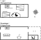 Ein schönes und gemütlich eingerichtetes Ferienhaus. Der 1. Stock ist mit zwei Schlafräumen, Badezimmer und eine Leiter, die in das offene Obergeschoss führt, eingerichtet.Terrasse gegen Westen. Gemeinsame Sandbox und Schaukel verfügbar.