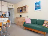 Wohnung in Fanø Bad, oben im 1. Stock mit Blick auf die Nordsee. Die 2005 renovierte Wohnung ist ausgestattet mit einer Küche in offener Verbindung zum Wohnzimmer, einem Schlafzimmer mit zwei Betten, einem Badezimmer mit Fußbodenheizung und einem Balkon, von dem aus Sie den wunderschönen Meerblick genießen können.