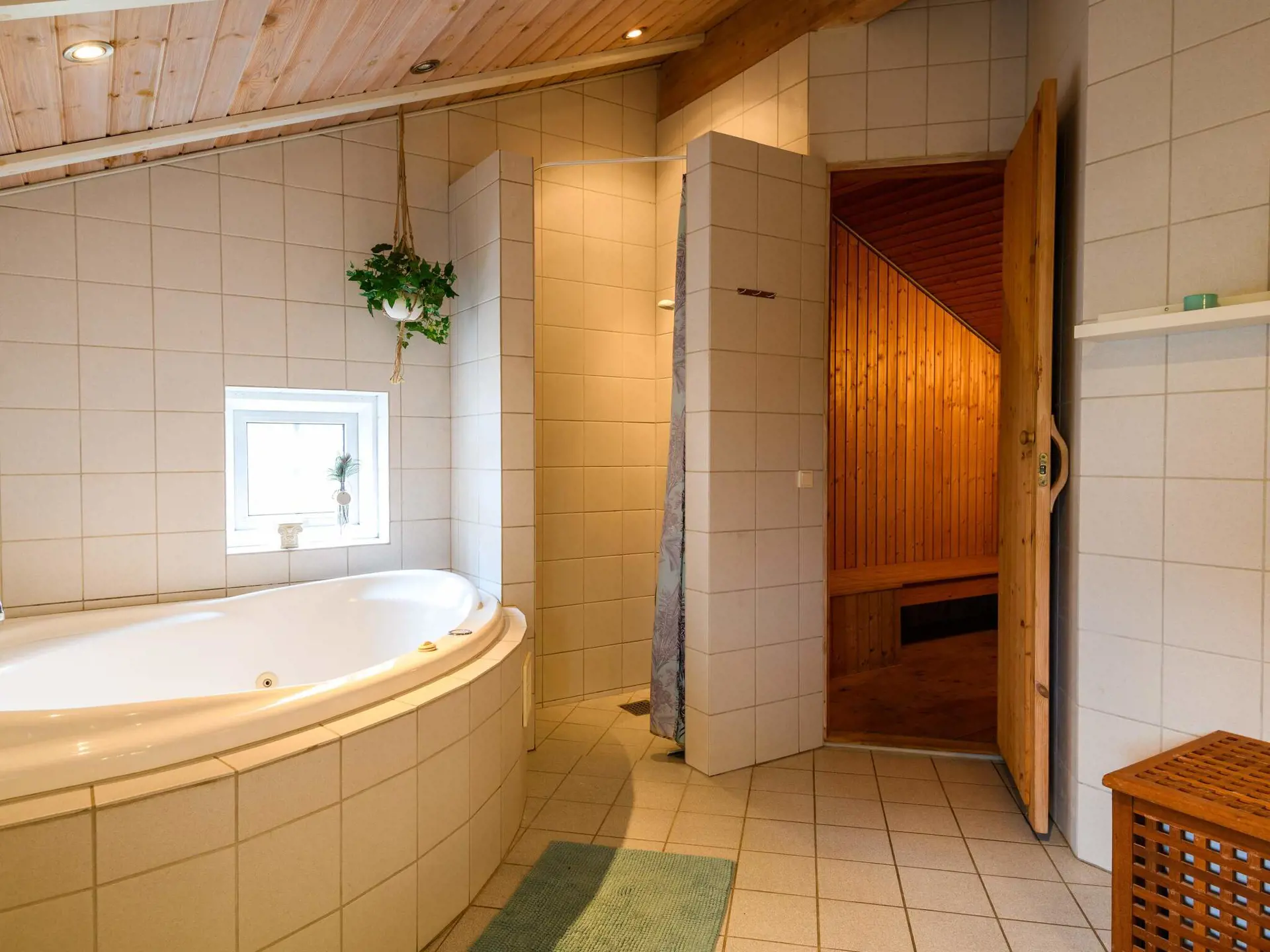 Auf einem schönen, großen Naturgrundstück mit mehreren Terrassen liegt bei Rindby dieses Ferienhaus. Sie wohnen hier in der Nähe von Geschäften und nur 500 m vom herrlichen Strand entfernt. Im Haus schöne Küche mit Essbereich in offener Verbindung mit dem Wohnzimmer. Gefliester Boden mit angenehmer Fußbodenheizung, außer in den Schlafzimmern, die über Teppichboden verfügen. Im Wohnzimmer können Sie es sich vor dem Holzofen gemütlich machen, zudem steht eine klimafreundliche Wärmepumpe zur Verfügung. Geräumiges Badezimmer mit Whirlpool und Sauna. Gutes Mobiliar im Haus, das laufend erneuert wird.