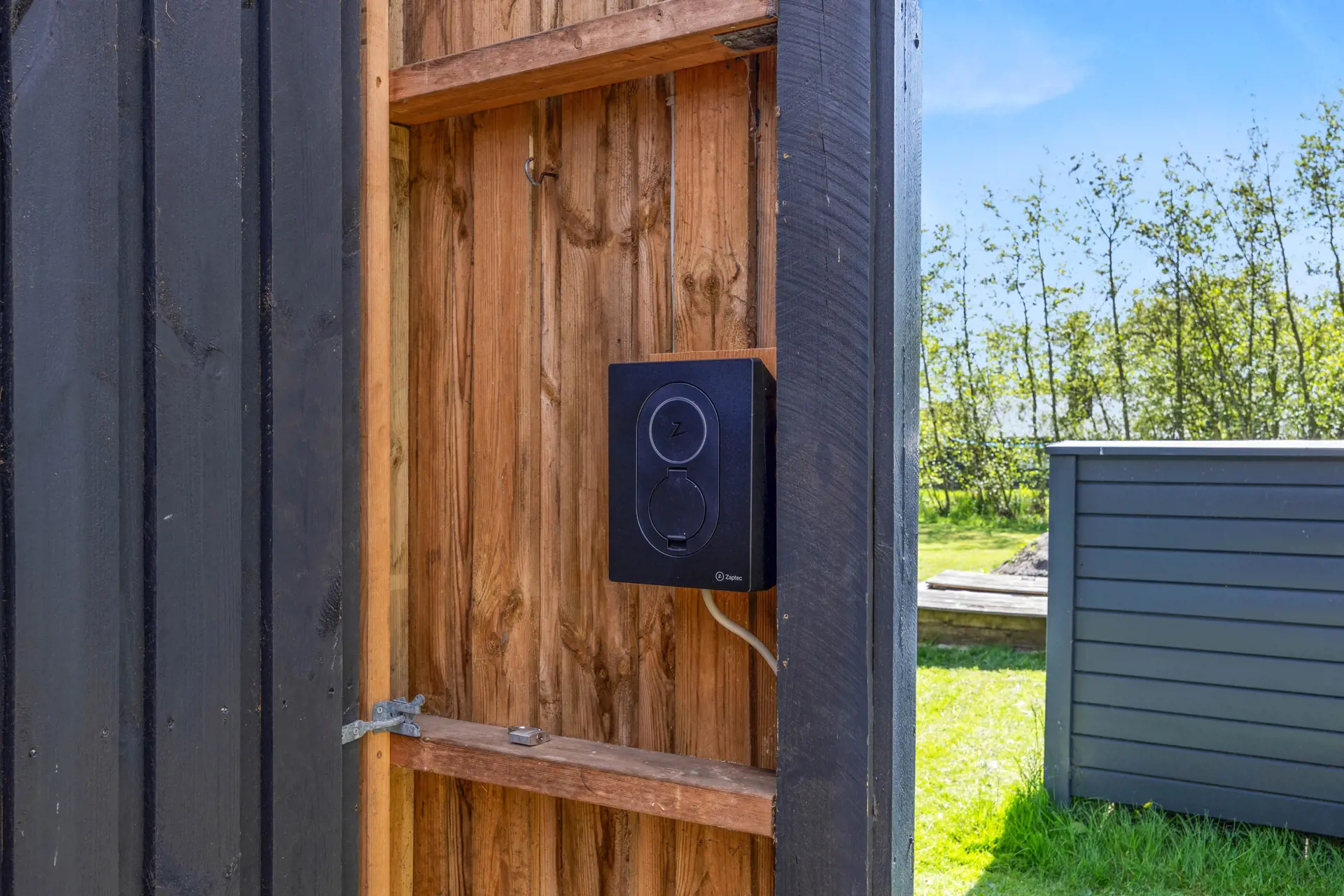 Solltet ihr mit einem Elektroauto anreisen, könnt ihr euer Fahrzeug ganz bequem direkt am Ferienhaus laden.