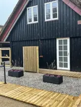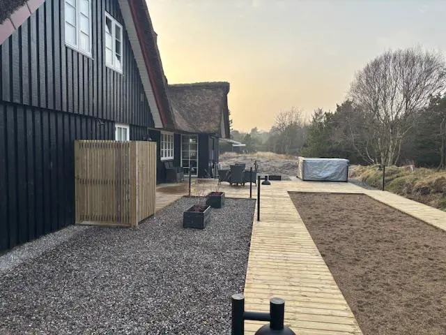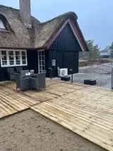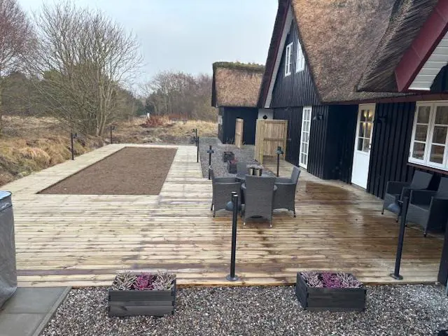 Für die gemütlichen Stunden an der frischen Luft stehen euch bequeme Gartenmöbel und ein Gasgrill zur Verfügung, sodass ihr gemeinsame Mahlzeiten genießen könnt. Das angrenzende Naturgrundstück bietet euch viel Platz zum Spielen und Erholen inmitten der malerischen Landschaft von Fanø.