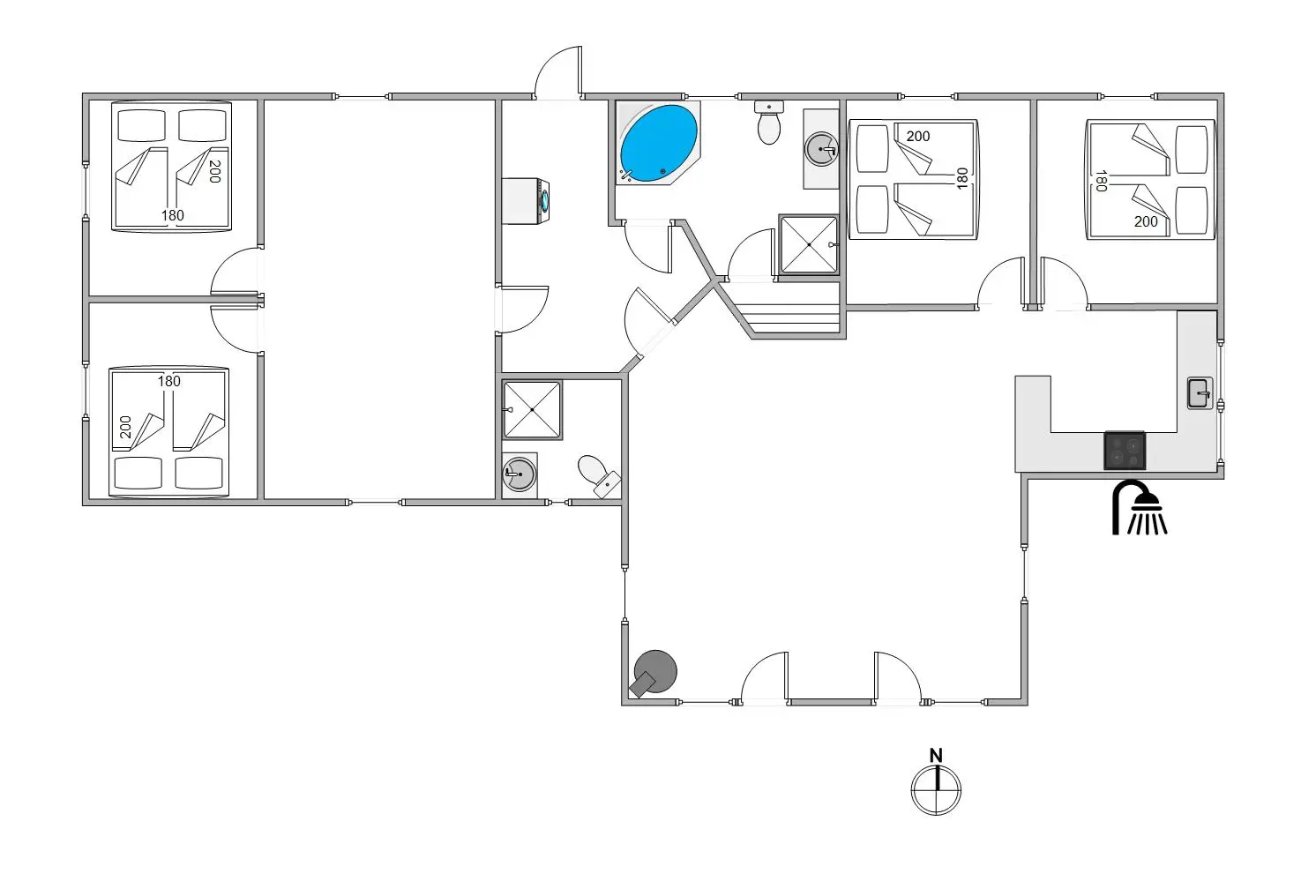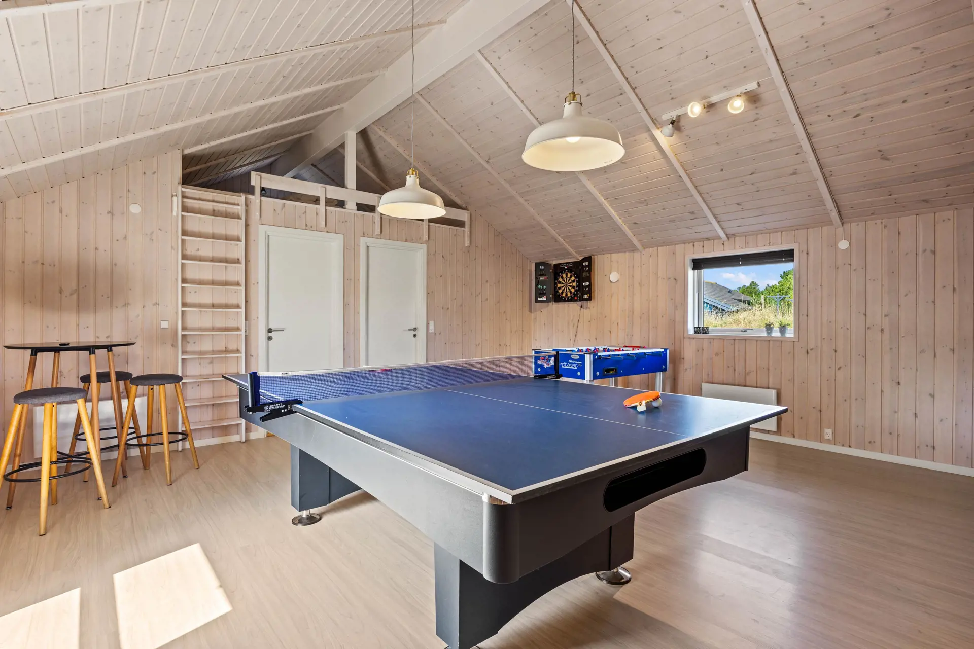 Das Ferienhaus verfügt über 4 Schlafzimmer mit insgesamt 8 Einzelbetten, sodass jede Person ihr eigenes Bett hat. 2 Badezimmer – beide mit Fußbodenheizung – sorgen dafür, dass ihr genügend Raum für euer tägliches Wohlbefinden habt. Für erholsame Stunden steht euch ein Whirlpool zur Verfügung. Die Küche ist bestens ausgestattet mit Spülmaschine, Waschmaschine und Trockner, sodass ihr euch um den Alltag keine Sorgen machen müsst. Als Highlight bietet das Ferienhaus auch ein Aktivitätsraum mit Billard, Tischtennis und weiteren Möglichkeiten für spannende Stunden mit der ganzen Gruppe.