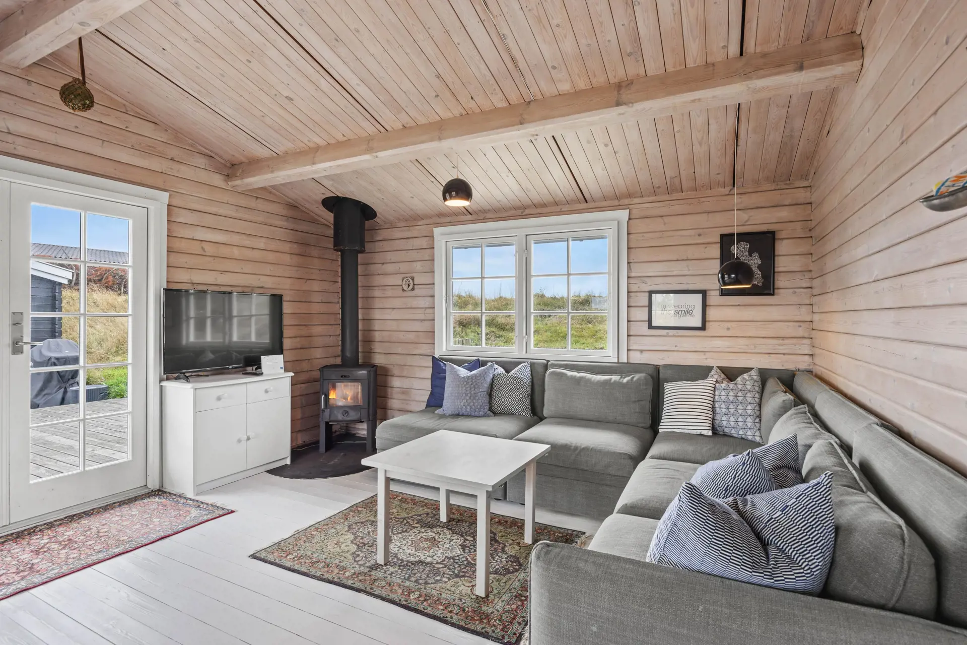 Im Inneren des Ferienhauses in Østre Klitvej 3 überzeugt das Ferienhaus mit einer behaglichen Atmosphäre, die sofort zum Entspannen einlädt. Der gemütliche Wohnraum ist das Herzstück des Hauses. Hier sorgt ein Kaminofen an kühlen Tagen für eine wohlige Wärme und für echte Hygge-Momente, wenn ihr es euch abends bei knisterndem Feuer bequem macht. Die Küche ist praktisch eingerichtet und verfügt unter anderem über eine Spülmaschine, sodass ihr euch nach den Mahlzeiten nicht lange mit Abwasch aufhalten müsst. Auch eine Waschmaschine steht euch zur Verfügung, was besonders für längere Aufenthalte komfortabel ist.