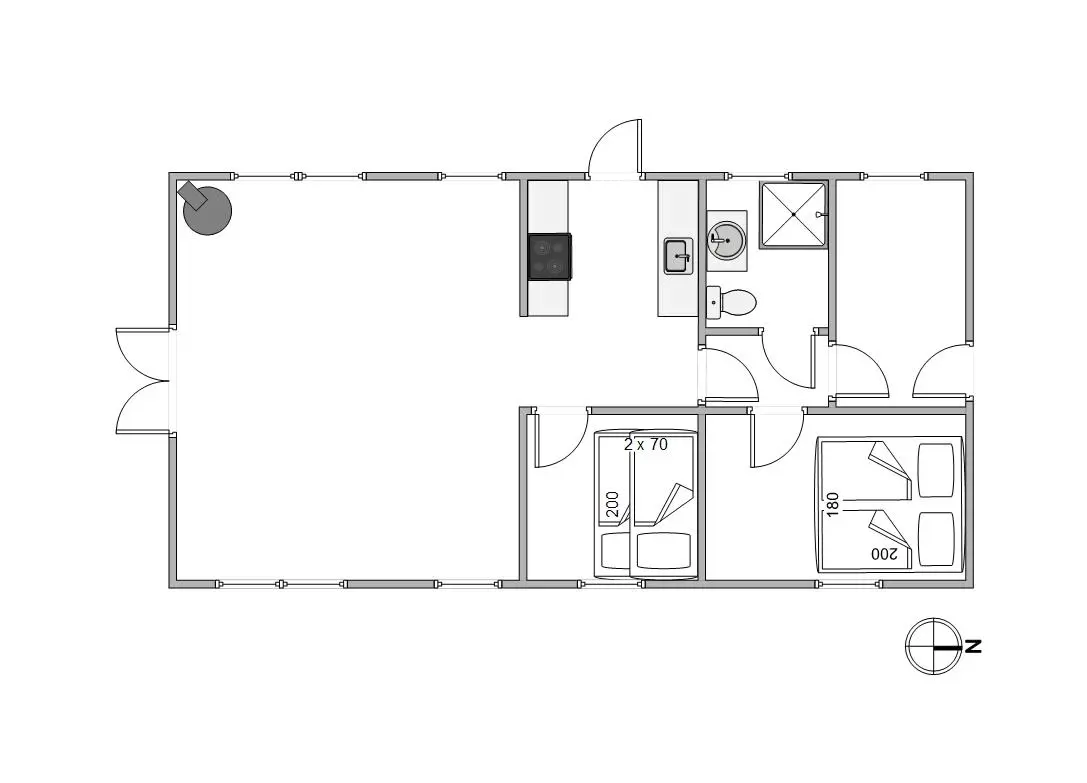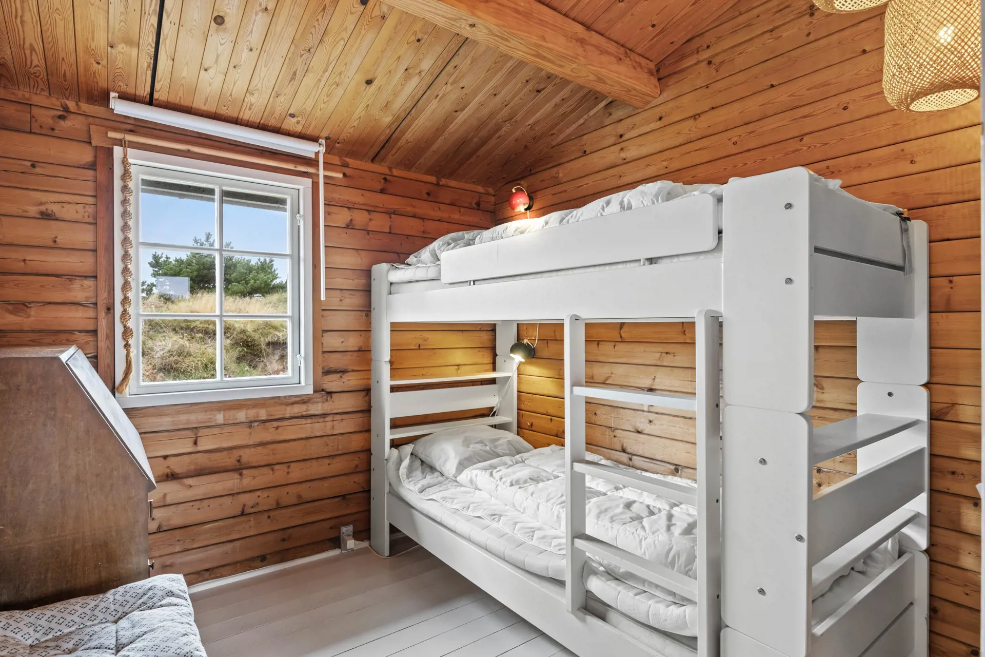 Insgesamt bietet das Ferienhaus 2 Schlafzimmer - eines mit einem Doppelbett, das euch erholsamen Schlaf garantiert, und ein weiteres mit einem Etagenbett, das sich perfekt für Kinder oder mitreisende Freunde eignet. Damit haben alle 4 Personen ausreichend Platz und Privatsphäre. Ein funktionales Badezimmer mit Dusche rundet die praktische Einrichtung ab.