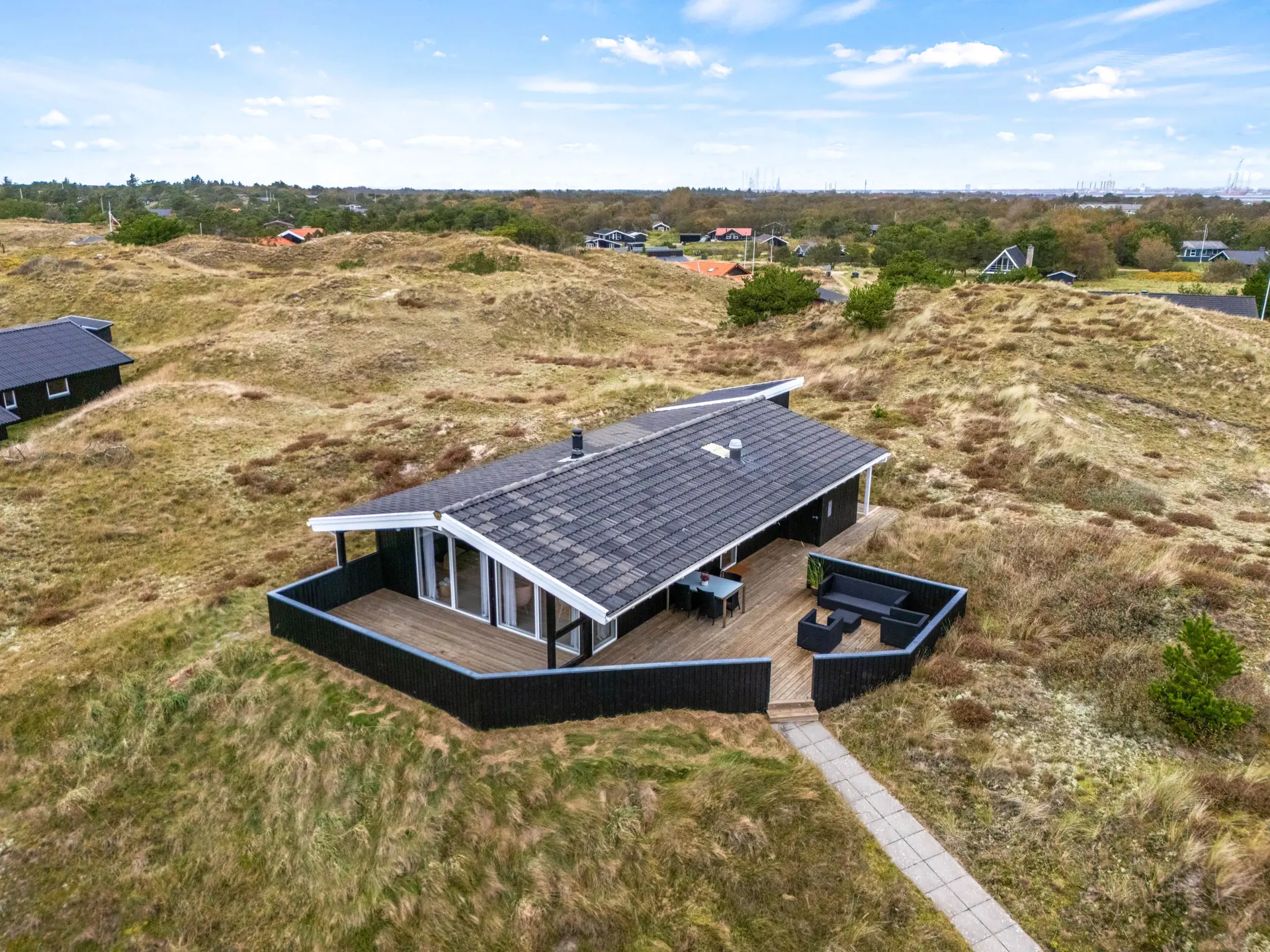 Das Ferienhaus am Lyngbakken 11 überzeugt nicht nur innen, sondern auch außen. Euch erwarten sowohl eine überdachte als auch eine abgeschirmte Terrasse, die euch windgeschützte Stunden im Freien ermöglicht. Ob gemeinsames Frühstück oder entspannter Abend mit Blick in die Natur – die Terrasse ist der ideale Ort dafür. Das Ferienhaus liegt auf einem schönen Naturgrundstück, das zum Spielen, Sonnen oder Entspannen einlädt.