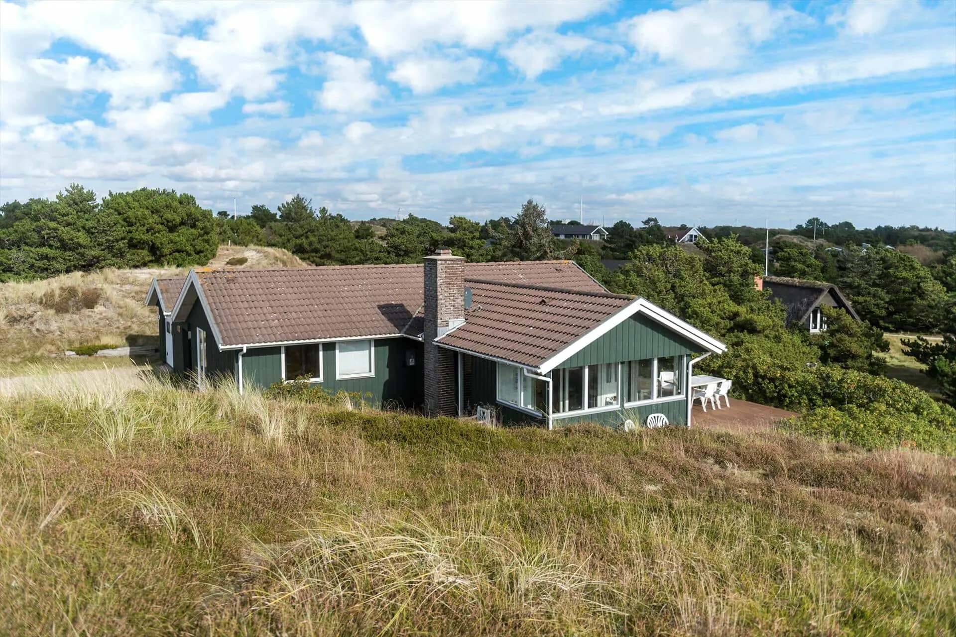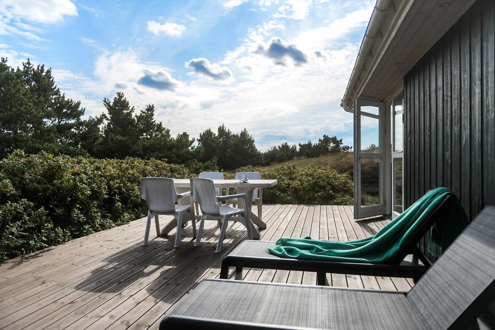 Wenn die Sonne über Fanø scheint, hält dich hier kaum etwas drinnen – und auf dem Grundstück in der Nybyvej 58 B findest du den idealen Ort, um das Leben im Freien zu genießen. Die großzügige Terrasse liegt perfekt zur Sonne und wird ganz sicher zu deinem Lieblingsplatz im Urlaub. Decke draußen den Tisch fürs Mittagessen, finde ein ruhiges Plätzchen für ein Nickerchen oder lausche einfach dem Zwitschern der Vögel und dem Rauschen der Bäume. Das naturbelassene Grundstück rund ums Haus trägt dazu bei, dass du dich eins fühlst mit Fanøs einzigartiger Landschaft – vielleicht bekommst du sogar Besuch von einem neugierigen Fasan oder ein paar vorbeihüpfenden Kaninchen. Wenn es dunkel wird, ist der Grill schnell angefeuert, und du kannst den Tag bei einem Glas Wein unter dem Sternenhimmel ausklingen lassen.