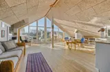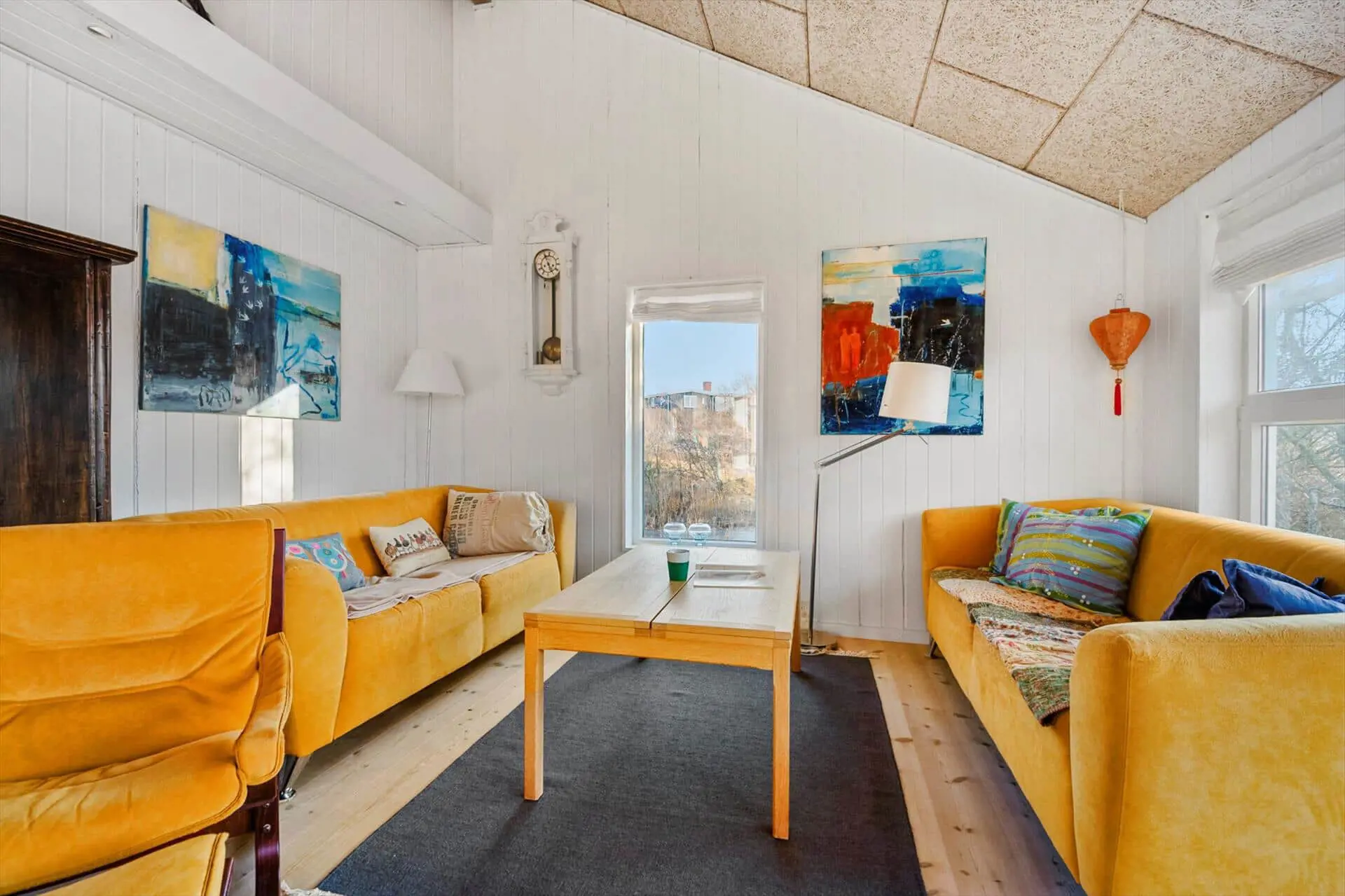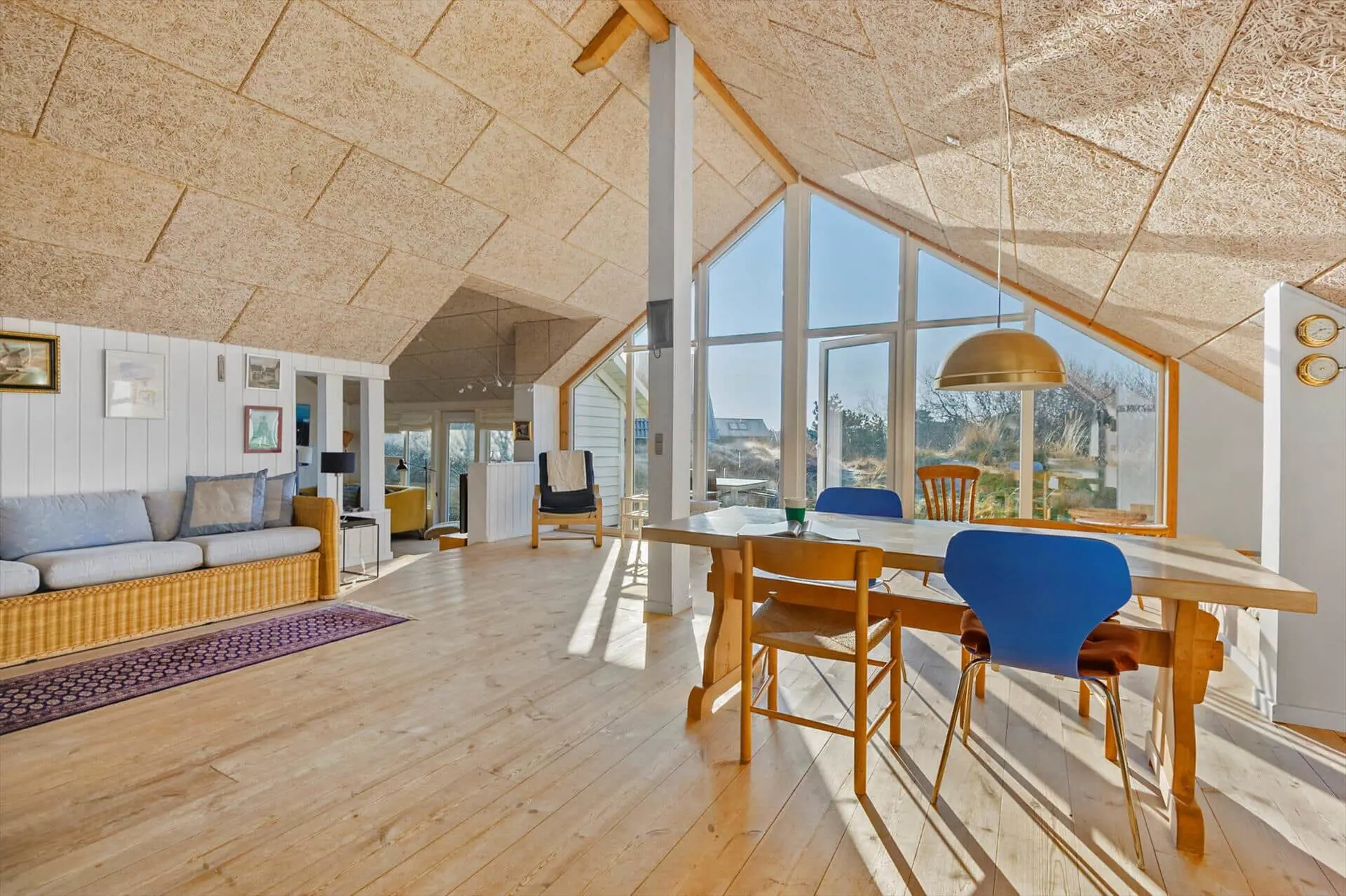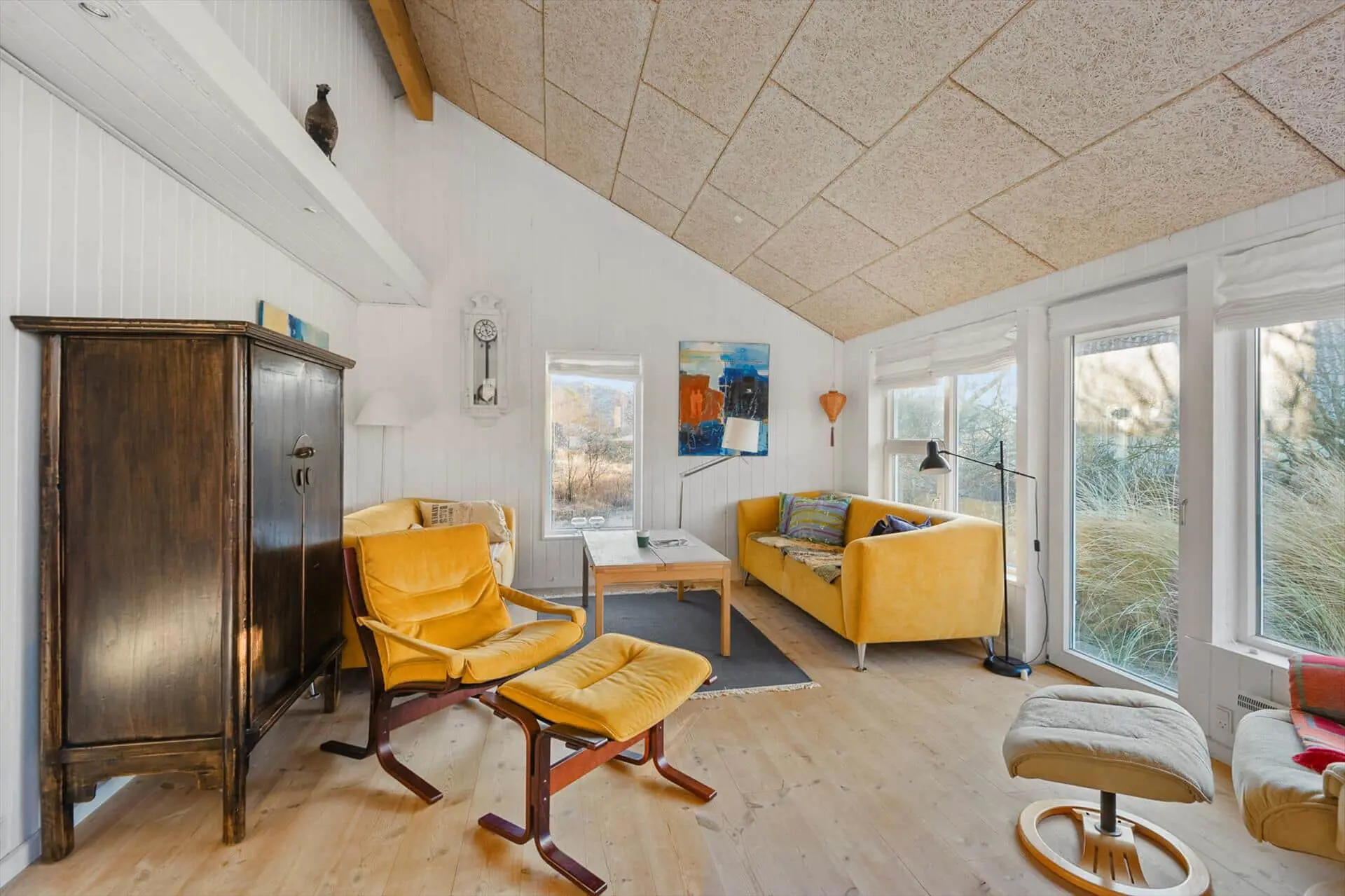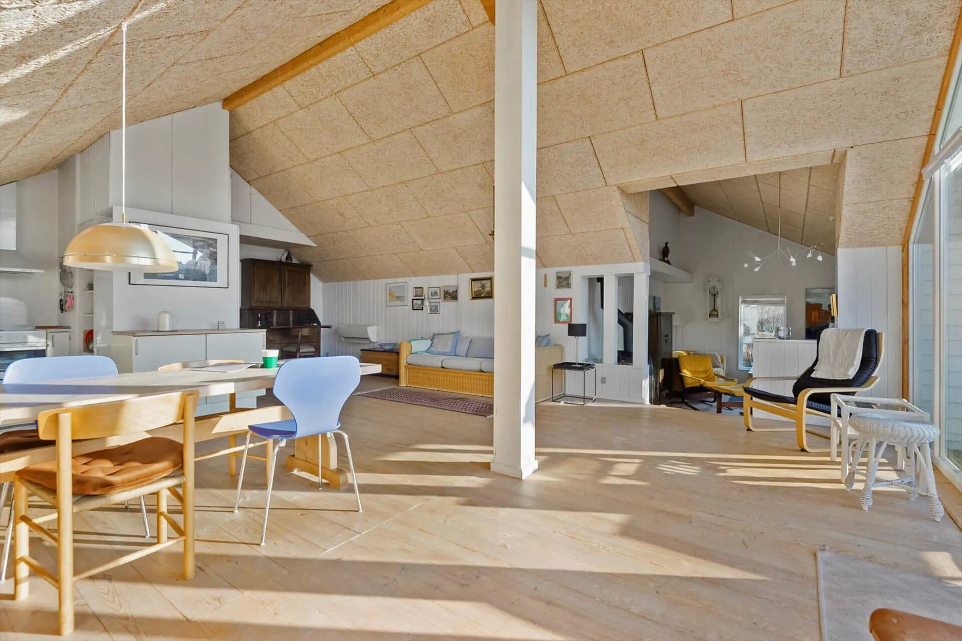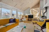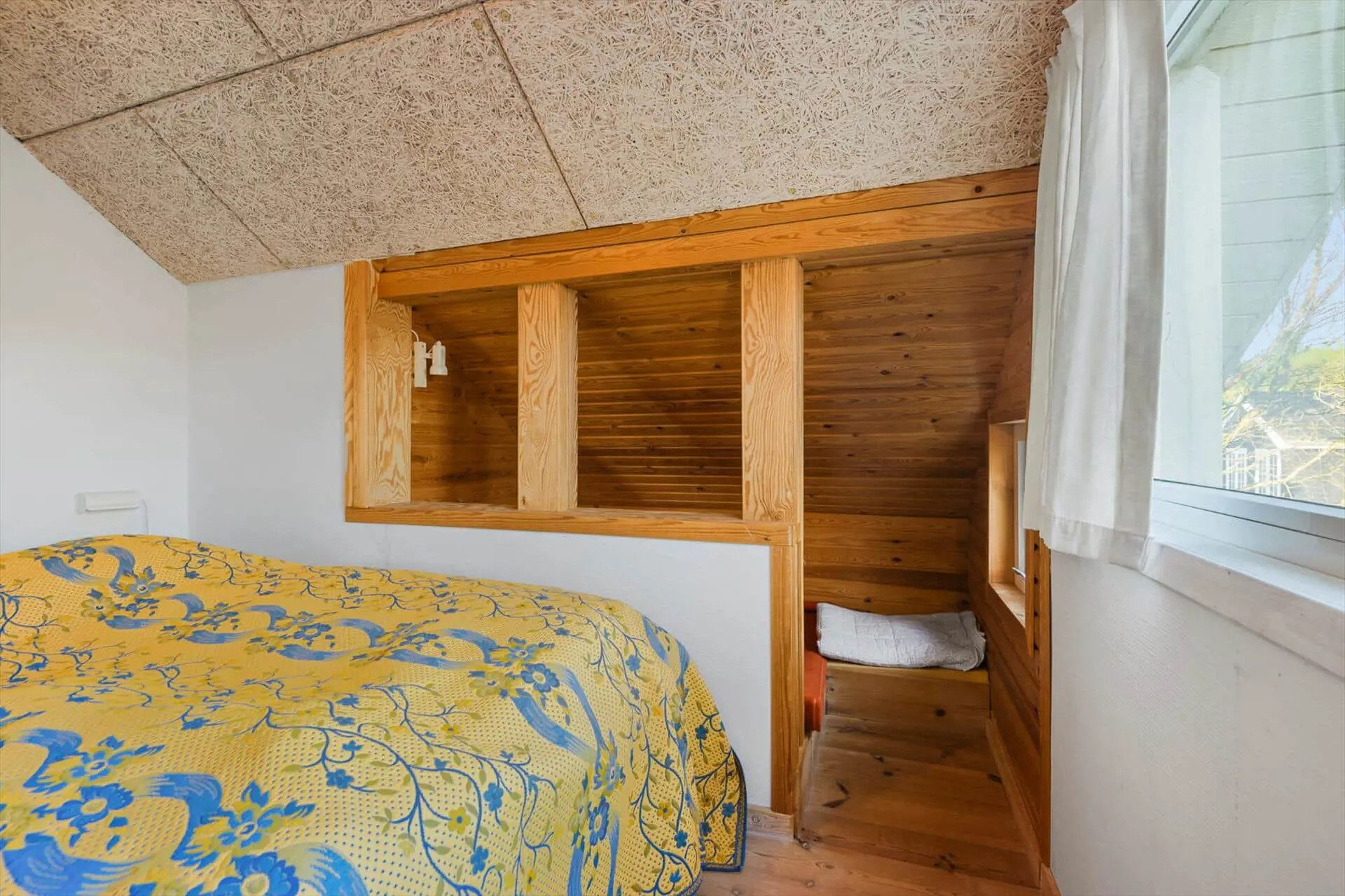 Im Inneren empfängt dich eine warme und behagliche Atmosphäre. Holzböden und ein Kaminofen sorgen für die klassische Ferienhaus-Gemütlichkeit, die viele mit einem Urlaub auf Fanø verbinden. Wenn im Kaminofen die Flammen leise knistern und draußen langsam die Dämmerung einsetzt, kommt man ganz von selbst zur Ruhe und genießt die stillen Stunden gemeinsam. Die Einrichtung ist liebevoll und persönlich gestaltet, und die durchdachte Raumaufteilung sorgt dafür, dass man sich jederzeit wohlfühlt – ganz gleich, ob man die Zeit gemeinsam verbringt oder sich zwischendurch etwas zurückziehen möchte. Die Wohnbereiche sind versetzt angeordnet und verfügen über einen separaten TV-Bereich, der für eine natürliche Gliederung und eine entspannte Atmosphäre im Haus sorgt. Die gemütliche Alkove lädt zum Entspannen, zu einem Mittagsschlaf oder zum Vorlesen ein, während der übrige Wohnraum ideale Voraussetzungen für gesellige Abende mit Spielen, Gesprächen und Beisammensein bietet. Hier fühlt man sich schnell wie zu Hause und lässt den Urlaub sein ganz eigenes, ruhiges Tempo finden.