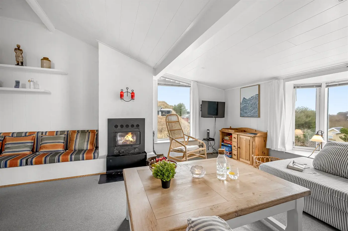 In der Ferienunterkunft gibt es einen Fernseher.1 Chromecast. Radio.1 Bluetooth-Lautsprecher. Mindestens 4 dänische Fernsehsender. 1-3 schwedische Fernsehsender. 1-3 norwegische Fernsehsender. Mindestens 4 deutsche Fernsehsender. Es steht kabellose Internetverbindung zur Verfügung.