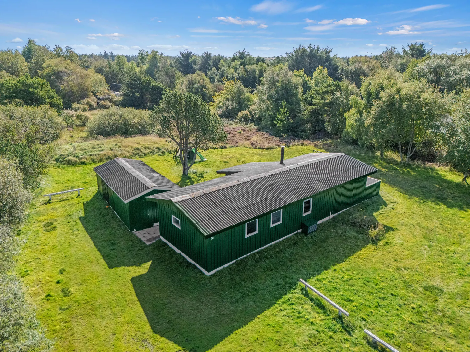 Das schöne, gut durch Bäume und Büsche abgeschirmte Grundstück ist in jeder Hinsicht der perfekte Rahmen für einen erholsamen Urlaub. Neben einer großen Liegewiese besteht der Garten aus gemütlichen Ecken, in denen sich die Kinder sowie euer Hund herrlich austoben können. Eine Schaukel und ein Spielturm werden euren Kleinen bestimmt viel Spaß bereiten.