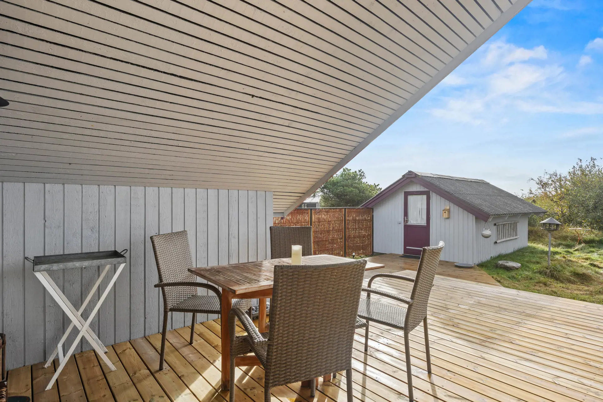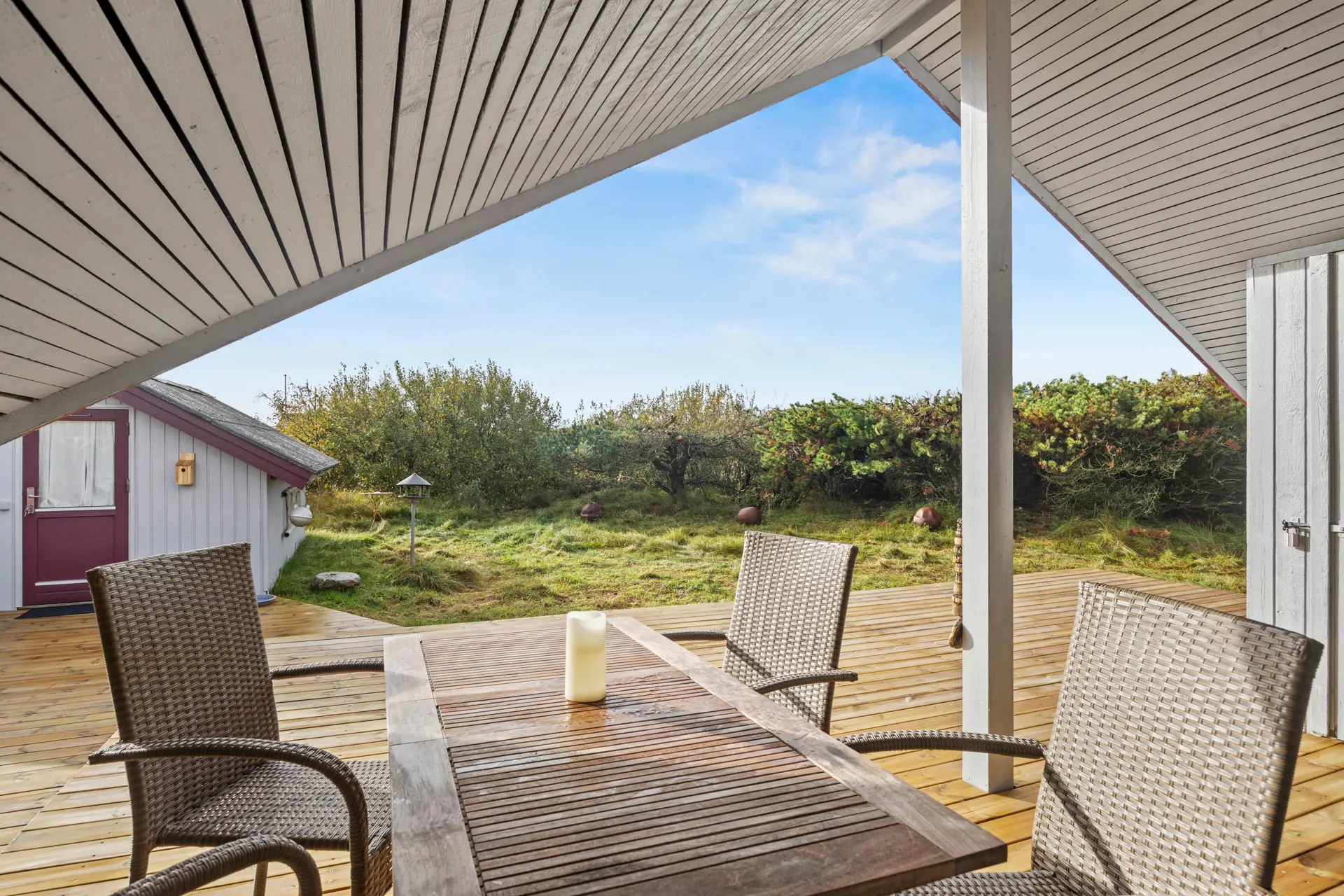 Rund um das Ferienhaus Ved Bavnen 28 erwartet euch ein großzügiger Außenbereich, der zum Verweilen und Genießen einlädt. Auf der offenen Terrasse könnt ihr in der Sonne entspannen, während die überdachte Terrasse bei jedem Wetter ein gemütliches Plätzchen bietet. Hier lässt sich der Tag bei einer Tasse Kaffee am Morgen oder einem Glas Wein am Abend wunderbar ausklingen.