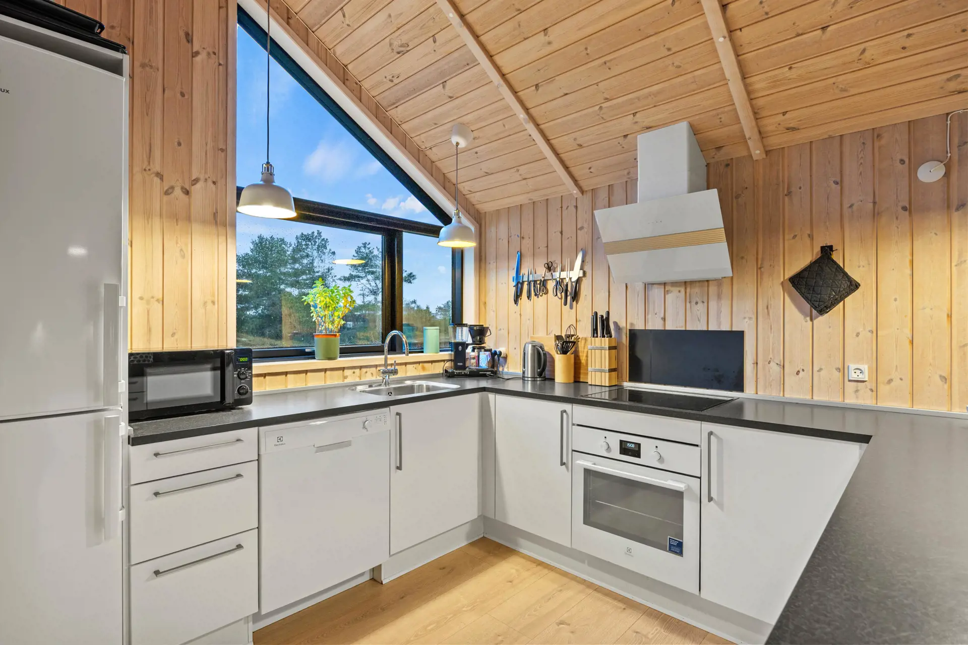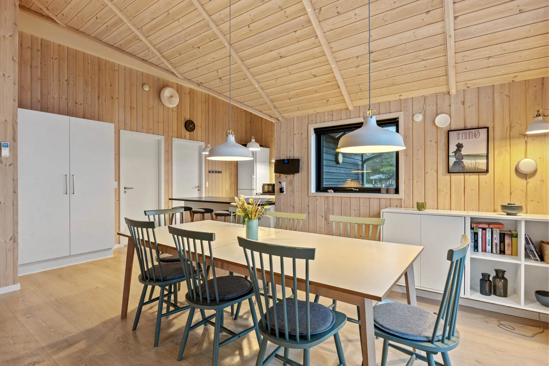 Der einladende Innenbereich im Ferienhaus in Vestermarken 10 verbindet skandinavische Wohnlichkeit mit einer Vielzahl an Annehmlichkeiten. Der Kaminofen bringt eine warme Atmosphäre in den Wohnraum, während die Wärmepumpe und die Fußbodenheizung im Bad für ein angenehmes Raumklima sorgen. Die offene Küche, ausgestattet mit Spülmaschine, bietet euch die Möglichkeit, gemeinsame Mahlzeiten bequem zuzubereiten.