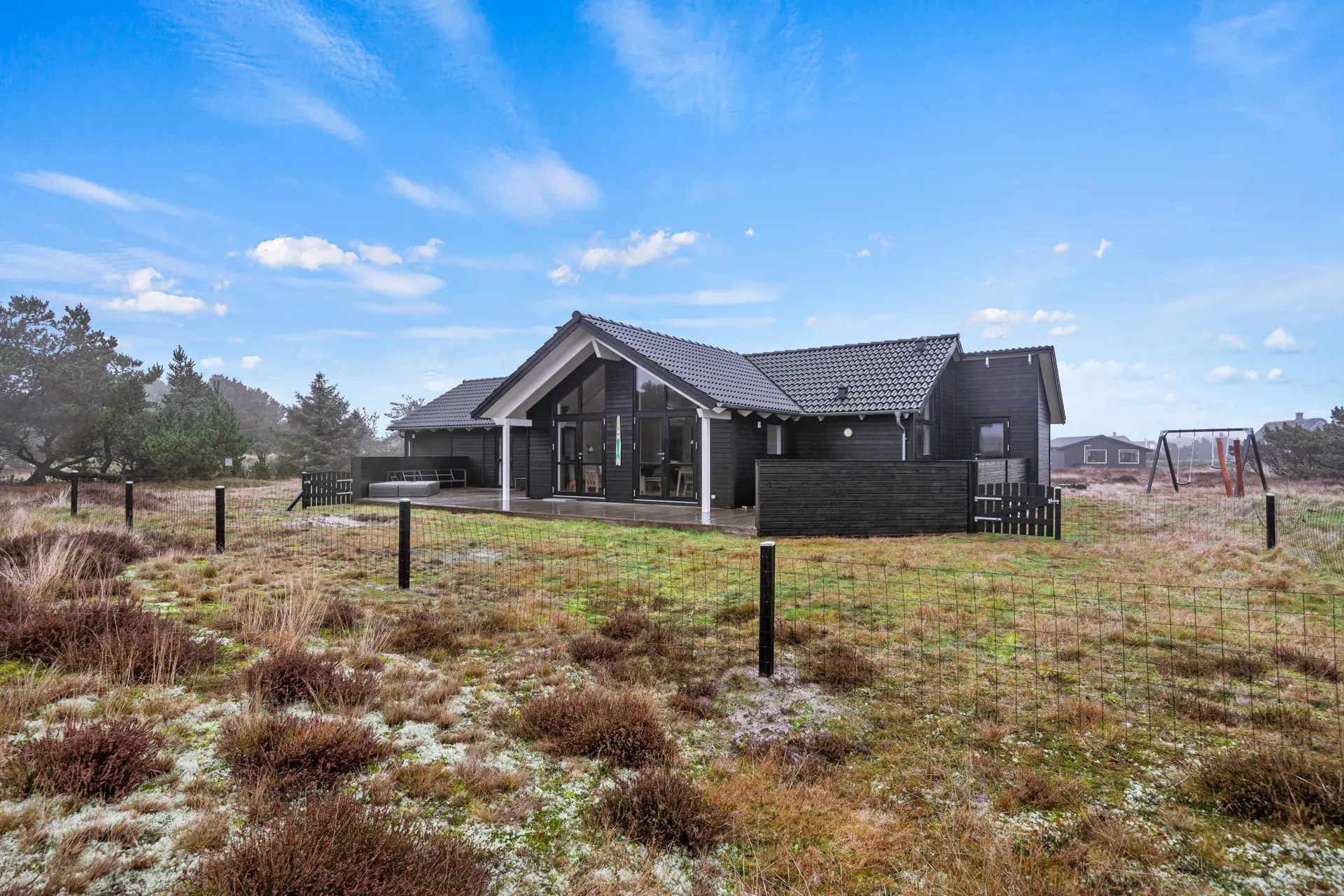 Das Ferienhaus liegt auf einem weitläufigen Naturgrundstück, das euch viel Platz zum Spielen, Entspannen und Erkunden bietet. Für Familien ist besonders der Außenbereich ein Pluspunkt, denn mit Schaukel und Sandkasten kommen auch die jüngsten Personen voll auf ihre Kosten. Mehrere Terrassenbereiche ermöglichen euch, jede Tageszeit optimal zu genießen. Die offene Terrasse lädt zu sonnigen Stunden ein, während die geschlossene Terrasse windgeschützte Momente bietet. Der Strand ist nur 900 Meter entfernt, sodass ihr jederzeit spontan dorthin aufbrechen könnt. Einkäufe erledigt ihr bequem nach 700 Metern.