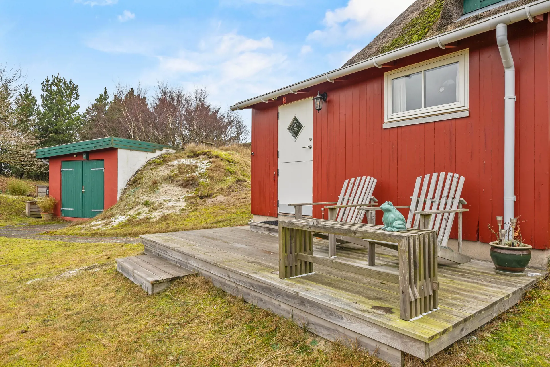 Die kleine aber feine Terrasse lädt euch ein, die frische Nordseeluft zu genießen und die Sonne auf der Haut zu spüren. Ob ein gemütlicher Kaffee am Morgen, ein entspanntes Glas Wein am Abend oder gemeinsame Grillabende unter freiem Himmel – hier erlebt ihr eure Urlaubstage zu zweit ganz bewusst inmitten der einzigartigen Natur Fanøs. Euer Hund kann dabei in der Umgebung umherstreifen, während ihr die Ruhe und Schönheit des Ortes auf euch wirken lasst.