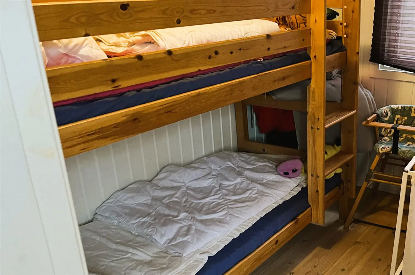 Die Schlafplätze verteilen sich auf 3 Schlafräume. 4 Schlafplätze in Doppelbetten. 2 Schlafplätze in einem Etagenbett. Ferner steht ein Kinderbett zur Verfügung.