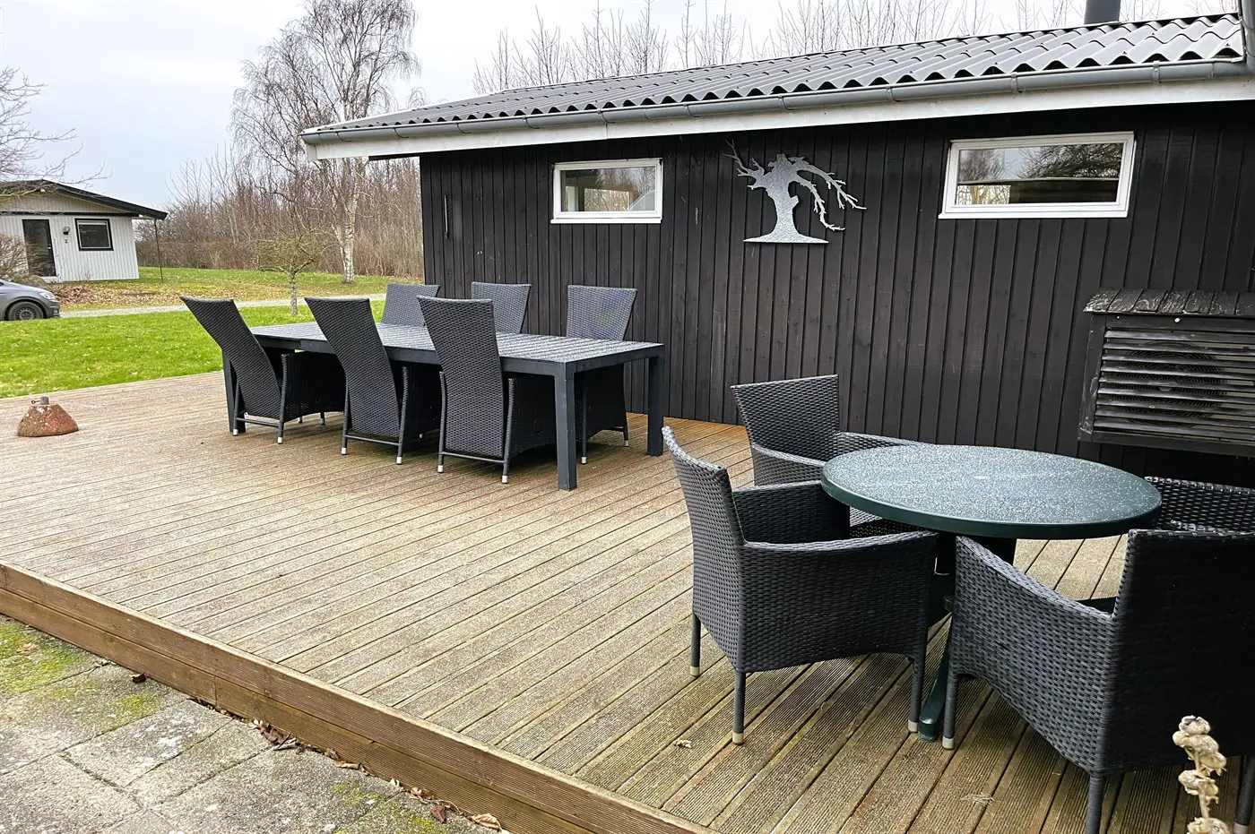 Das Haus liegt ungestört auf einem Eckgrundstück und verfügt über eine schöne Terrassenfläche sowohl vor als auch hinter dem Haus. Von der Terrasse vor dem Haus und vom Wohnzimmer aus hat man Blick auf das Wasser und den Sonnenuntergang, während man auf der Terrasse hinter dem Haus Morgensonne und an windigen Tagen mit auflandigem Wind geschützten Platz findet.