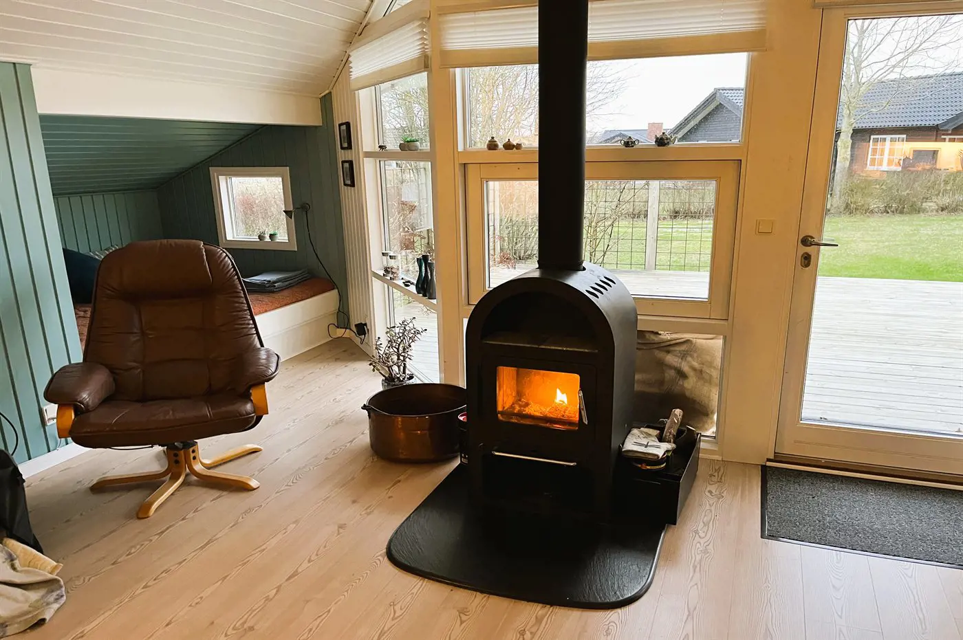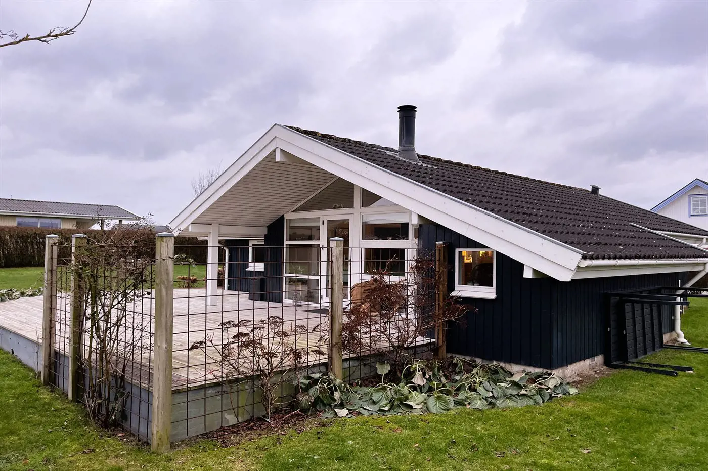 Auf dem Grundstück gibt es viel Platz für Aktivitäten im Freien, und nur wenige Gehminuten entfernt befinden sich sowohl der große Gemeinschaftsspielplatz als auch der Strand, wo in den Sommermonaten ein Badesteg aufgestellt ist.