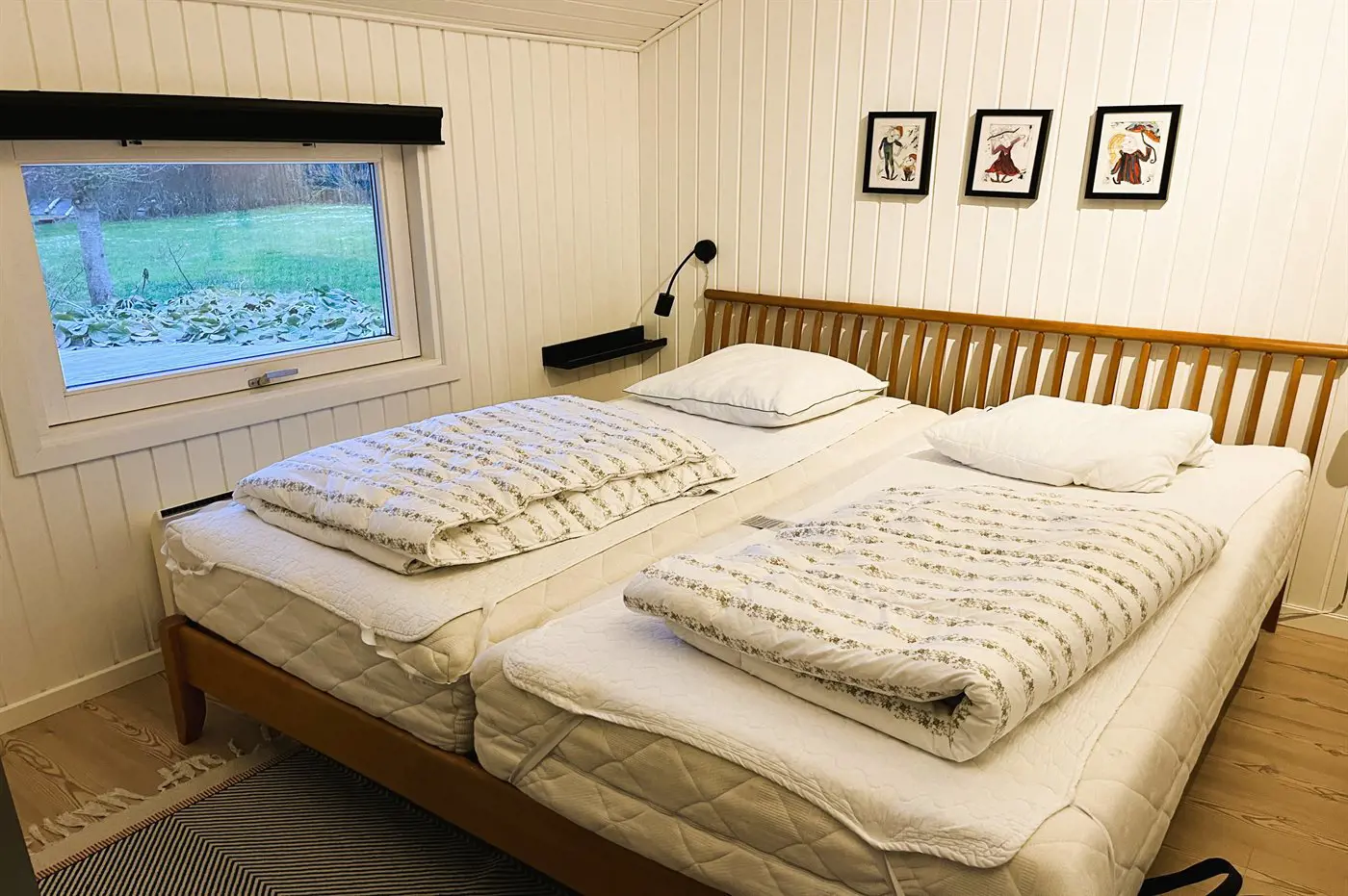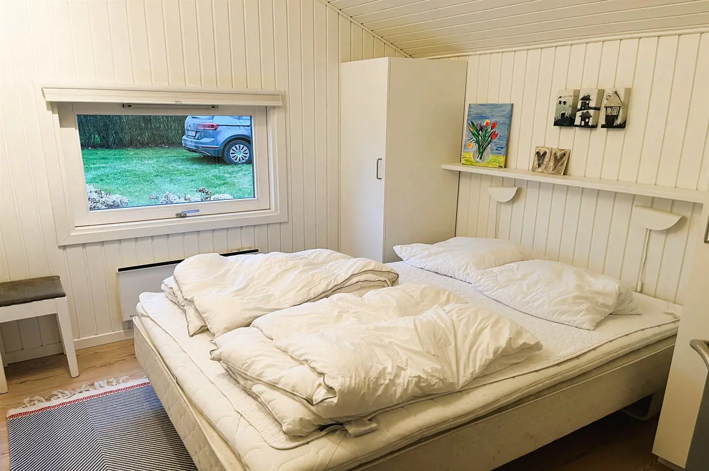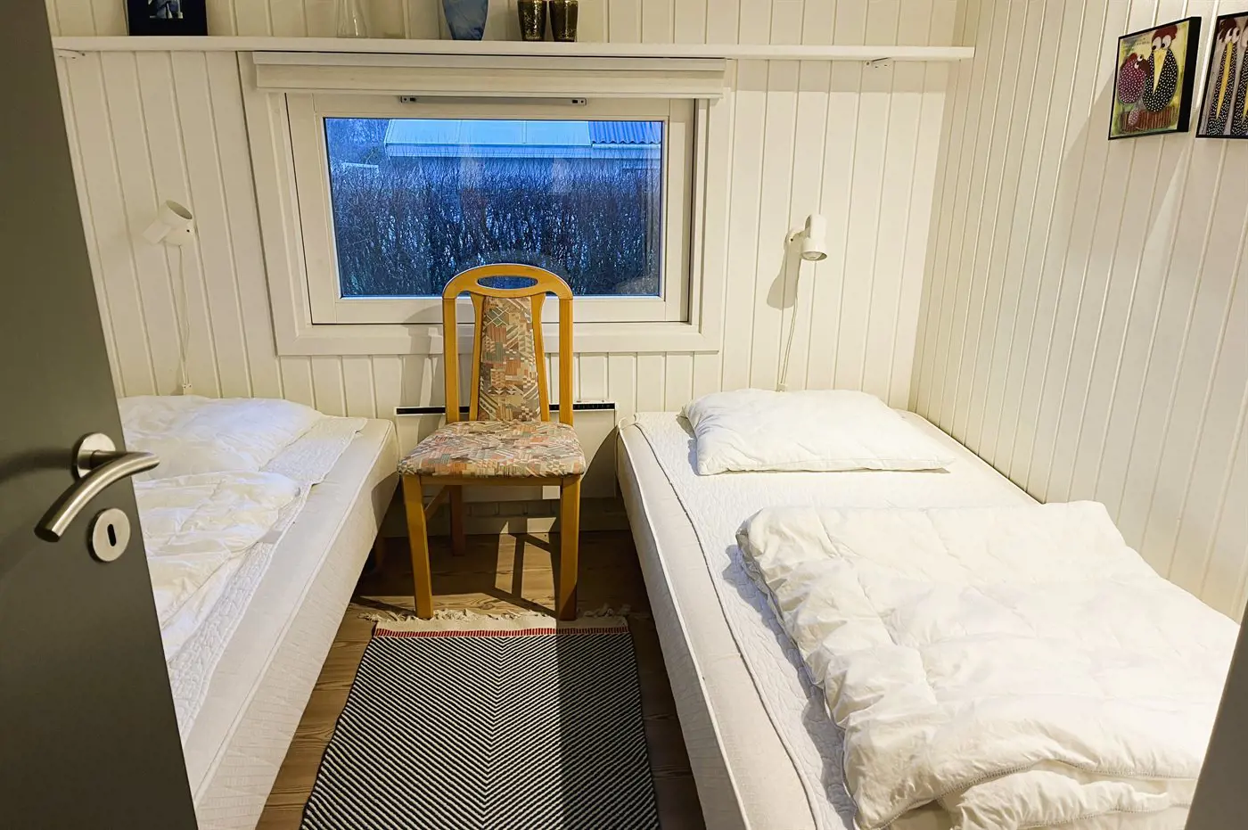 Im Haus gibt es insgesamt 8 Schlafplätze, da sich im Wohnzimmer zusätzlich ein Alkoven befindet, die als alternative Schlafmöglichkeit genutzt werden kann. Das Haus darf jedoch nur von maximal 6 Personen gebucht und bewohnt werden.