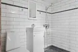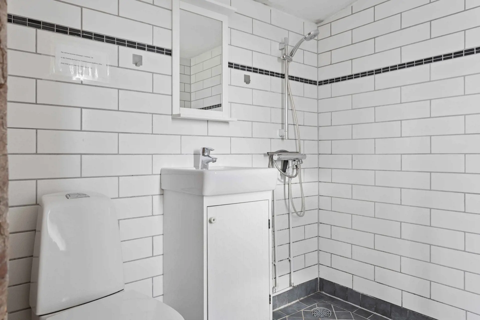 Das Badezimmer ist ordentlich und funktional mit Dusche. Die überschaubaren Außenbereiche bieten Privatsphäre und einen freien Blick auf die Natur und das glitzernde Wasser direkt vor Ihnen.