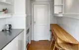 Gönnen Sie sich eine Auszeit in diesem historischen Haus, das mit seinem besonderen Charakter und der authentischen Bauweise sofort eine warme Atmosphäre schafft. Machen Sie es sich im Wohnbereich auf dem gemütlichen Sofa bequem. Die hellen Wände, das warme Holz und die traditionellen Möbel verleihen dem Raum einen einladenden Ausdruck. Nutzen Sie den kleinen Tisch in der Küche für gemeinsame Mahlzeiten oder für eine Tasse Kaffee zwischendurch oder verbringen Sie stille Momente vor dem kleinen Kaminofen, der an kühleren Tagen für angenehme Wärme sorgt.
