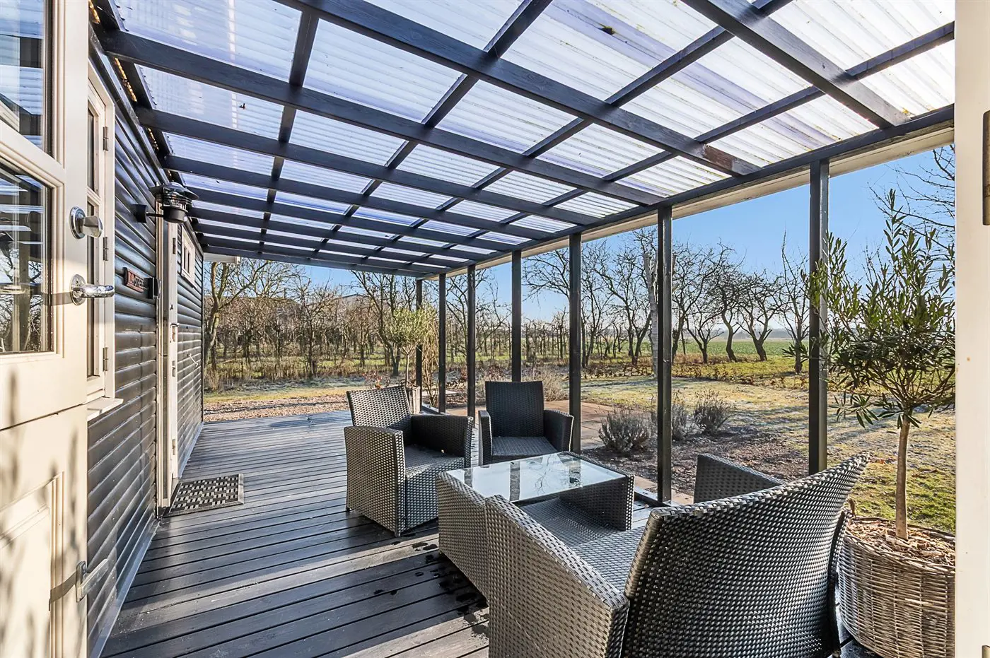 Das Haus wurde 2026 renoviert und ist hell und gemütlich eingerichtet. Innen wie außen gibt es viel Platz. Rund um das Haus gibt es mehrere schöne Terrassen, von denen ein großer Teil überdacht ist. Sowohl vom Haus als auch von der Terrasse vor dem Haus aus hast du einen herrlichen Blick über das Wasser.
