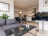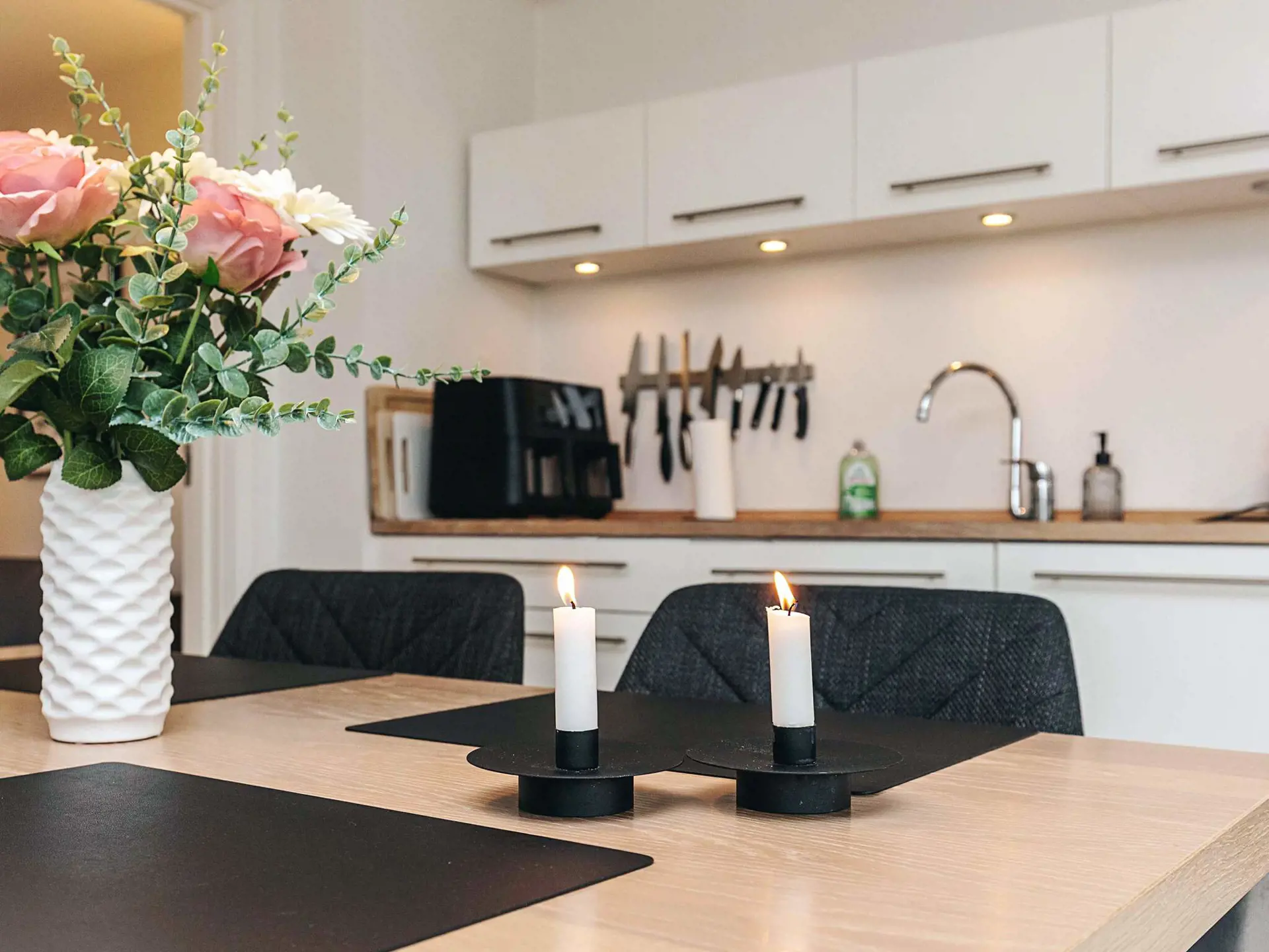 Die Wohnung verfügt über ein kombiniertes Wohn- und Esszimmer sowie eine gut ausgestattete Küche. Es gibt ausreichend Platz für bis zu fünf Personen mit zwei Schlafzimmern; eines davon mit einem Doppelbett und das andere mit einem Schlafsofa für zwei. Zudem Schlafsofa für eine Person im Wohnbereich. Das Badezimmer verfügt über eine Dusche und angenehme Fußbodenheizung. Die Ferienwohnung ist mit TV und Internet ausgestattet und wird mittels Fernwärme beheizt.