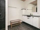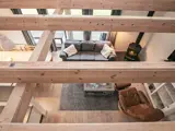 Der Wohnbereich hat eine offene Zimmerdecke bis zum First und wirkt so besonders hell und geräumig. Die Küche ist offen integriert, ideal für das Familienleben. Außerdem stehen zwei Schlafzimmer mit viel Staufläche und ein geräumiges Badezimmer bereit. Zur Küchenausstattung gehören u.a. Geschirrspüler, Ceranfeld und ein Kühlschrank mit 60 l Gefrierfach. Apple-TV, WLAN und Chromecast zum Streamen eigener Anbieter im Haus. Zugang vom Wohnbereich zur teils überdachten Terrasse mit Gartenmöbeln und Grill. Geräumiges Badezimmer mit Fußbodenheizung und Dusche.
