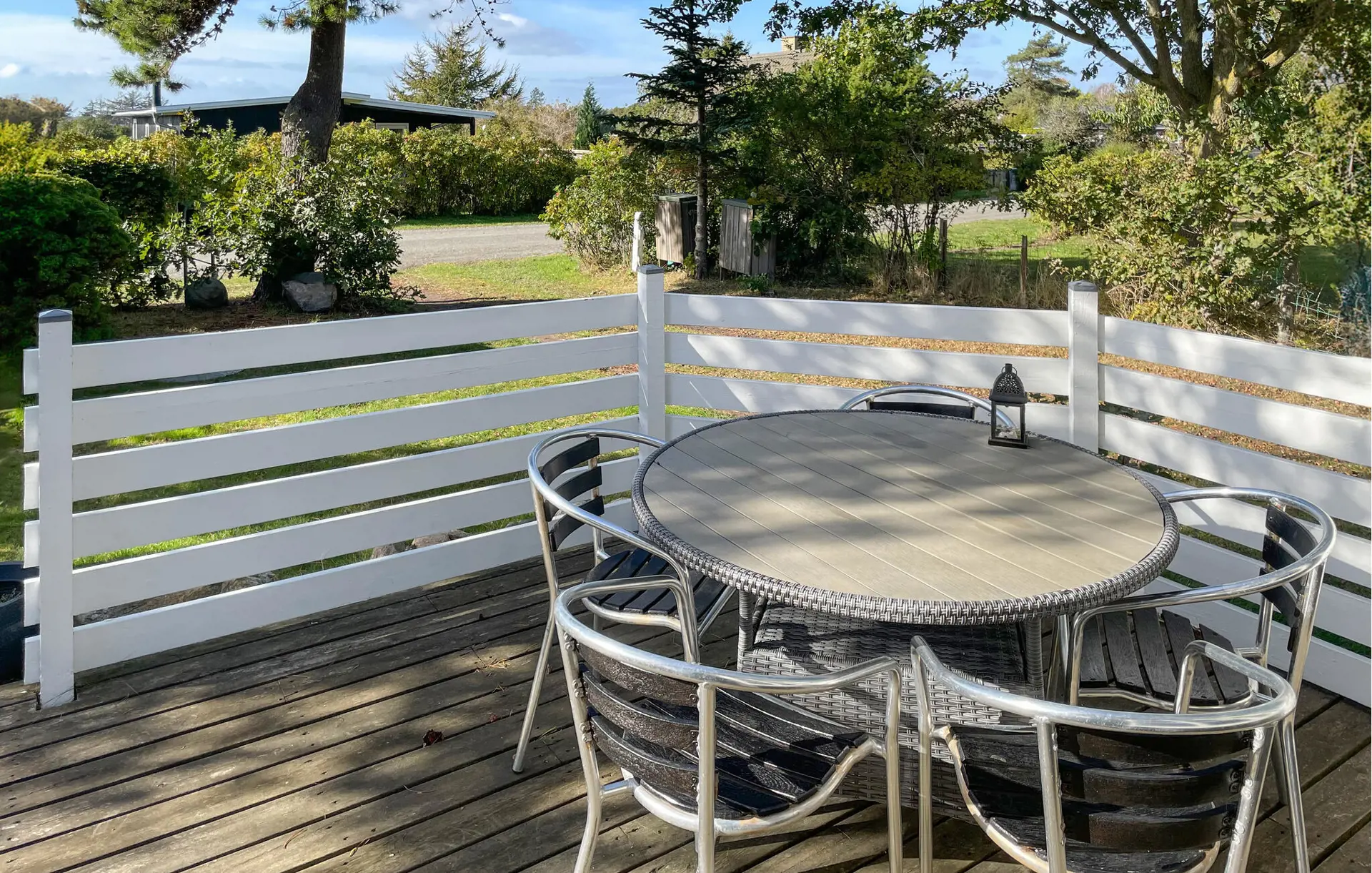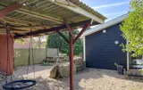 Treten Sie hinaus auf die sonnige Holzterrasse und genießen Sie den Blick ins Grüne. Starten Sie den Tag mit einem Frühstück im Freien oder grillen Sie am Abend. Im kleinen Garten können Sie entspannen oder sich ein schattiges Plätzchen im Sitzbereich hinter dem Haus suchen. Kinder freuen sich über den überdachten Sandbereich mit Schaukel.