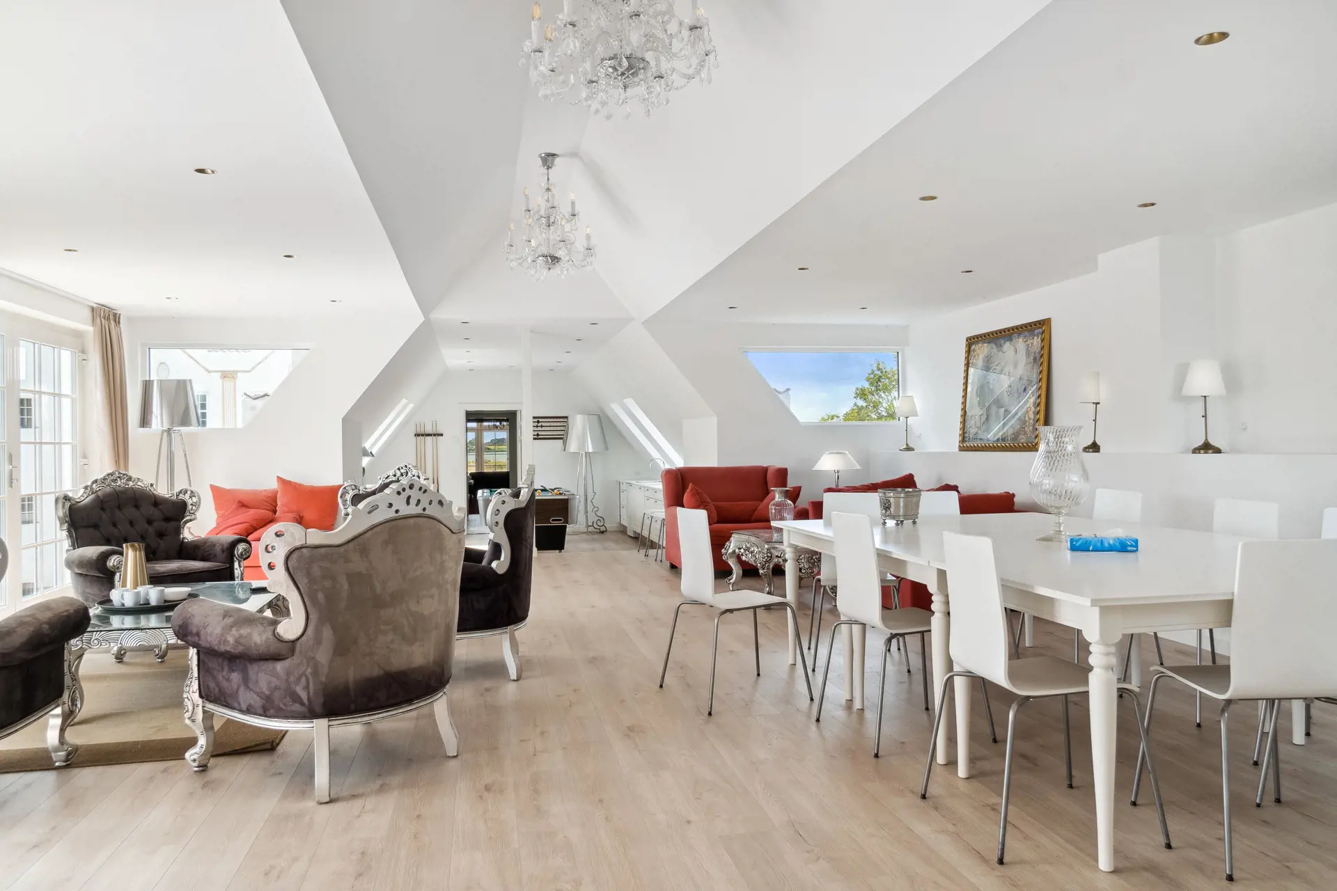 Du fährst auf der Uferstrasse am See und drehst nach rechts und so… plötzlich liegt dort Spophienlyst Schloss. Mit seinem eleganten weissen Gebäuden mit schwarzen Dächern, den treppenartigen Fassaden, einer himmelischen Aussicht und innen klar zu abenteuerlichen Festen und einzigartigen Ferien!