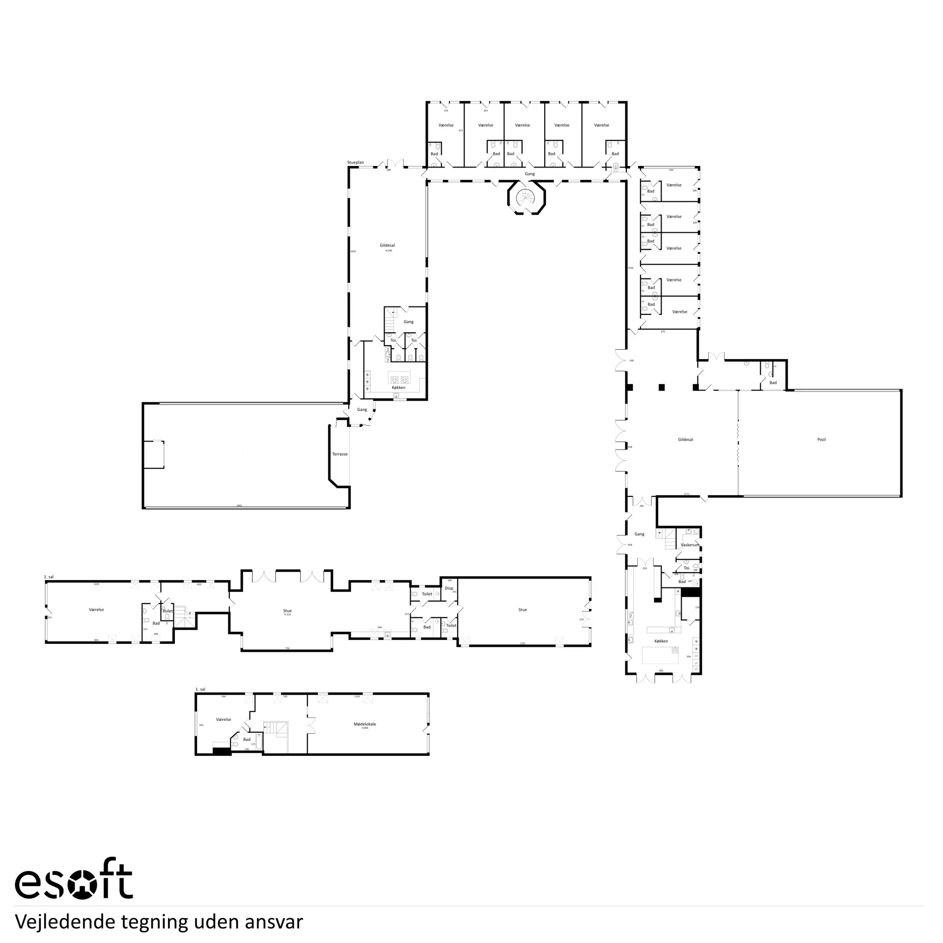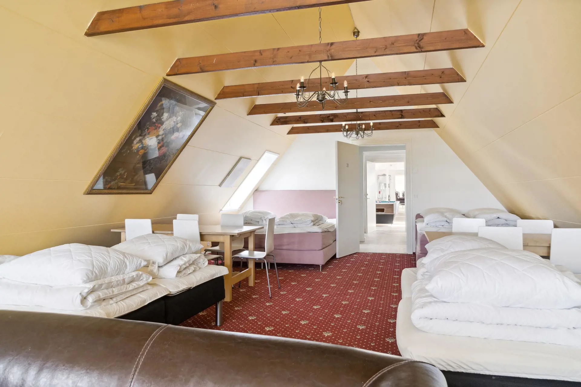 Zusammengerechtet ist auf Sophienlyst Schloss Platz für 44 übernachtende Gäste, welches gute in die meisten Feste mit 100 Gästen passt, weil viele nach Hause fahren oder in der Nähe Alternativen gefunden haben.