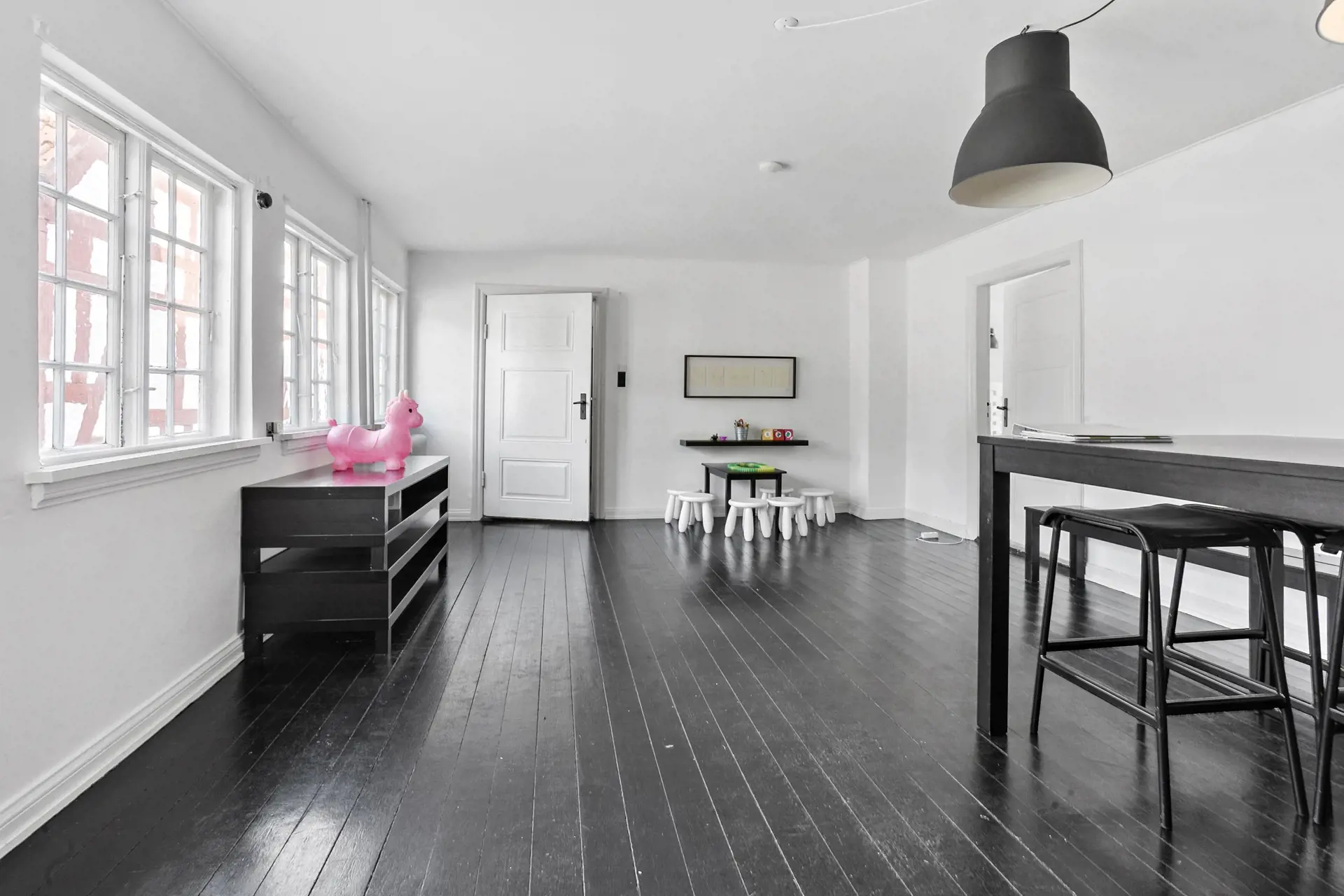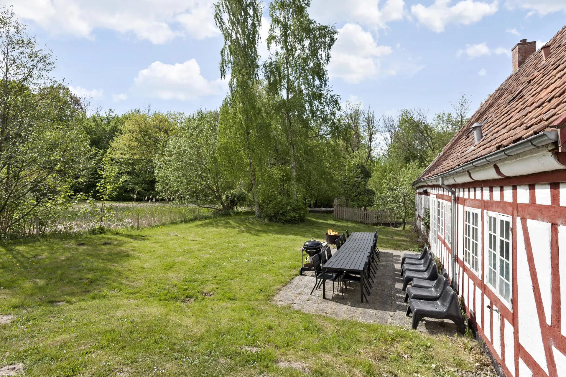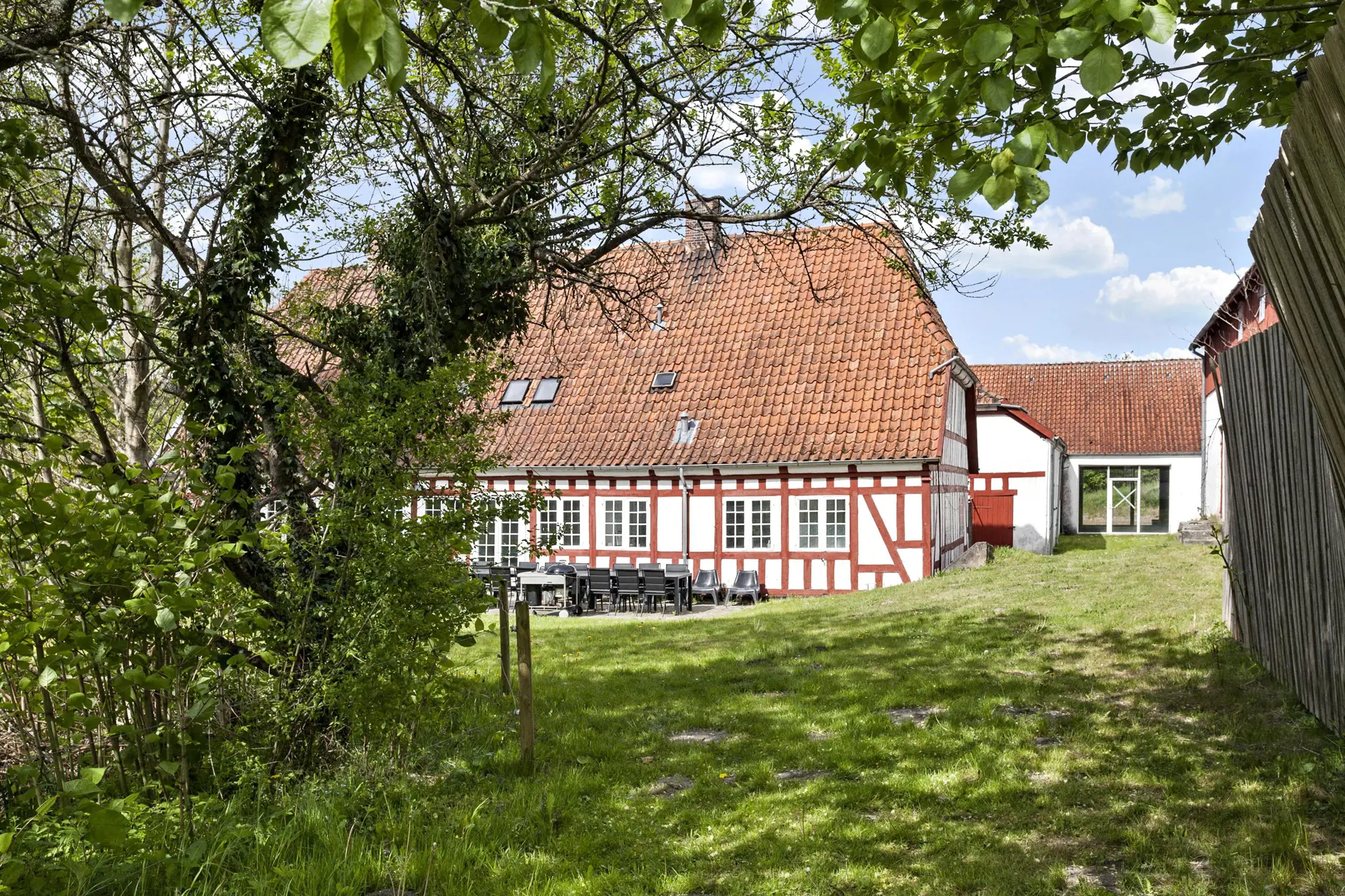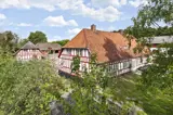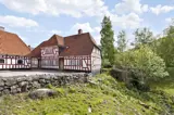 Hybæk Mølle ist ein alter, historischer Hof mit Fachwerkgebäuden und einem mit Kopfsteinpflaster belegten Hof. Der malerische Hof liegt in der Nähe des naturschönen Gebietes Føns und ist heute im Besitz des Gutes Wedellsborg und besteht aus 3 Nebengebäuden sowie einem Haupthaus. Hybæk Mølle war ursprünglich eine Wassermühle, und der Mühlbach schlängelt sich noch heute durch den Garten. Als Mieter hat man das gesamte zweistöckige, modern eingerichtete Hauptgebäude zur Verfügung. Der größte Teil der 8 Zimmer sowie ein Badezimmer liegen im 1. Stock. Im Erdgeschoss befinden sich die restlichen Schlafräume sowie ein weiteres Badezimmer. Darüber hinaus eine separate Küche, ein gemütliches Kaminzimmer und ein Esszimmer mit Zugang zur offenen Terrasse und zum Garten mit einem kleinen See am Ende des Grundstücks. Es besteht die Möglichkeit, 2 Zustellbetten bereitzustellen