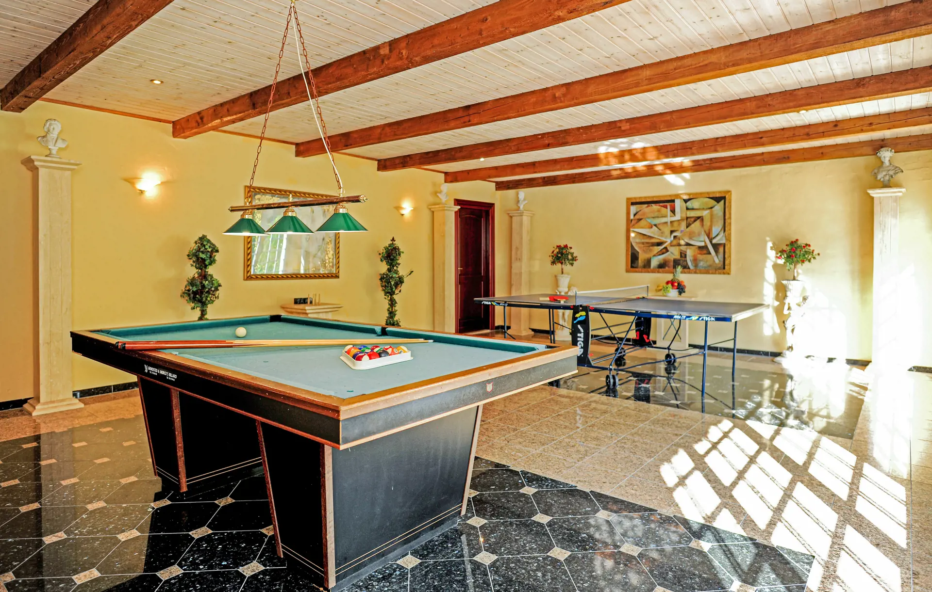 Am naturschönen Føns Vig erwartet Sie dieses ganz besondere Fachwerkhaus auf einem beeindruckenden Naturgrundstück von 16.700 m² mit alten Bäumen, viel Ruhe und herrlichen Möglichkeiten für Spaziergänge. Nur etwa 150 Meter vom Haus entfernt liegt ein privater Strand mit Blick auf den Lillebælt. Im Inneren empfängt Sie eine herrschaftliche Atmosphäre mit mehreren gemütlichen Wohnräumen, Kamin und Bibliothek – ideal für gemeinsame Stunden und entspannte Rückzugsorte. Mit 9 Schlafzimmern und 9 Badezimmern bietet das Haus auch bei vielen Gästen viel Komfort und Privatsphäre. Im Aktivitätsraum sorgen Billard und Tischtennis für Unterhaltung, während der große Poolbereich von 144 m² mit 65 m² großem Pool, Whirlpool und Sauna das Urlaubserlebnis abrundet. Hier wohnen Sie in einem einzigartigen Ferienhaus, das Natur, Wellness und klassischen Charme auf besondere Weise vereint.