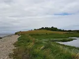 Ganz vorne in der ersten Reihe liegt auf einem etwas erhöhten und leicht abschüssigen Rasengrundstück dieses Ferienhaus mit herrlichem Panoramaausblick zum nahen Meer! Sie wohnen hier bei Fyns Hoved und können die wunderbare Aussicht sowohl vom Haus als auch von der Terrasse aus genießen. Es sind nur ca. 25 m zum Meer!