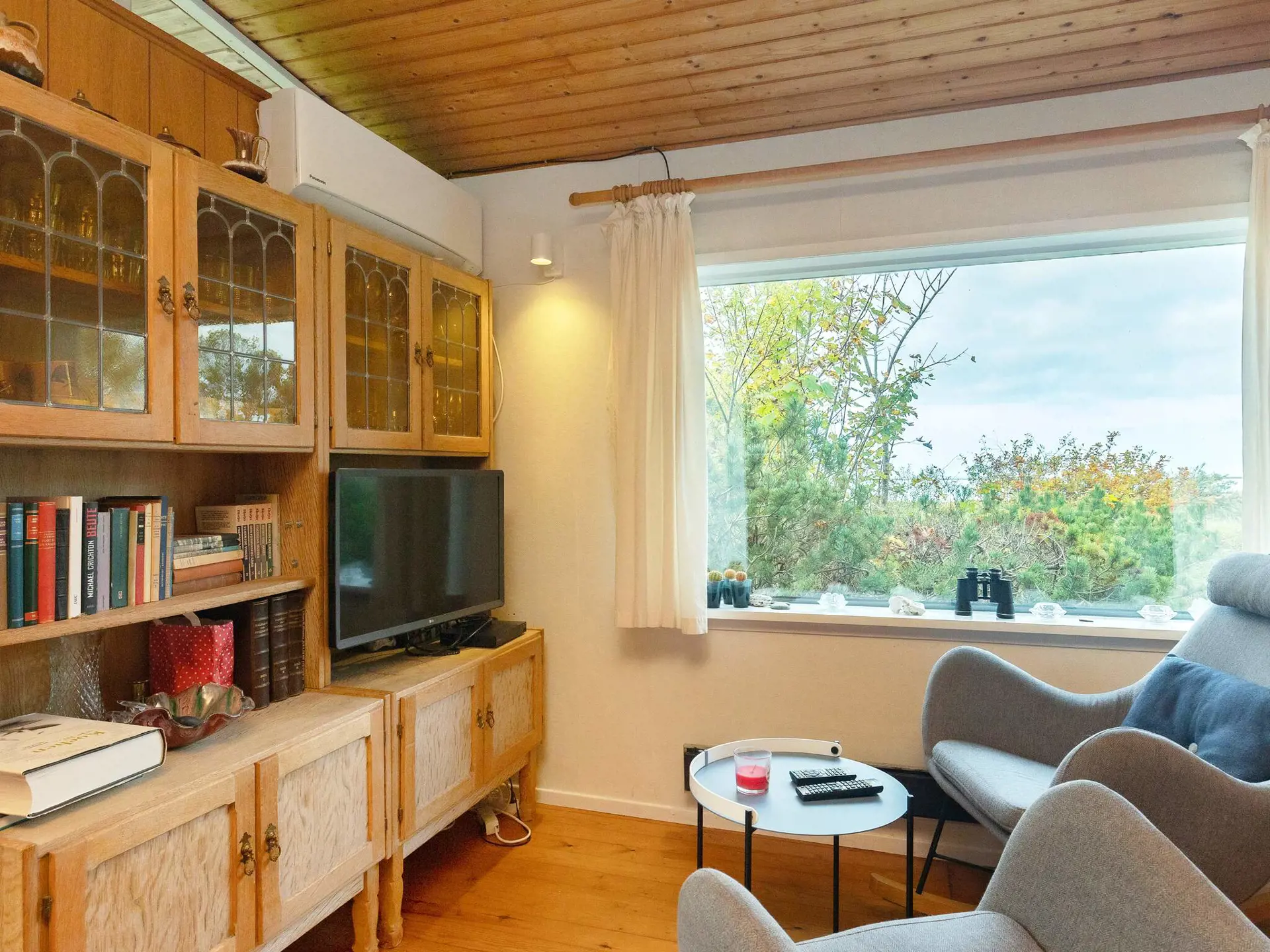 Ferienhaus, das nur ca. 100 m vom Ufer steht. Wohn-Esszimmer mit Ausgang