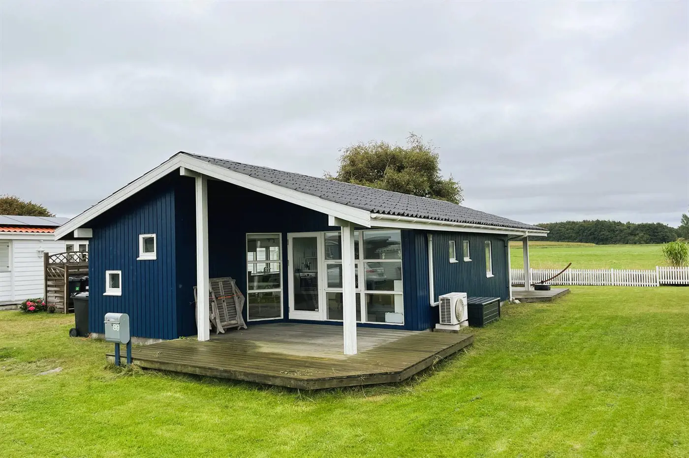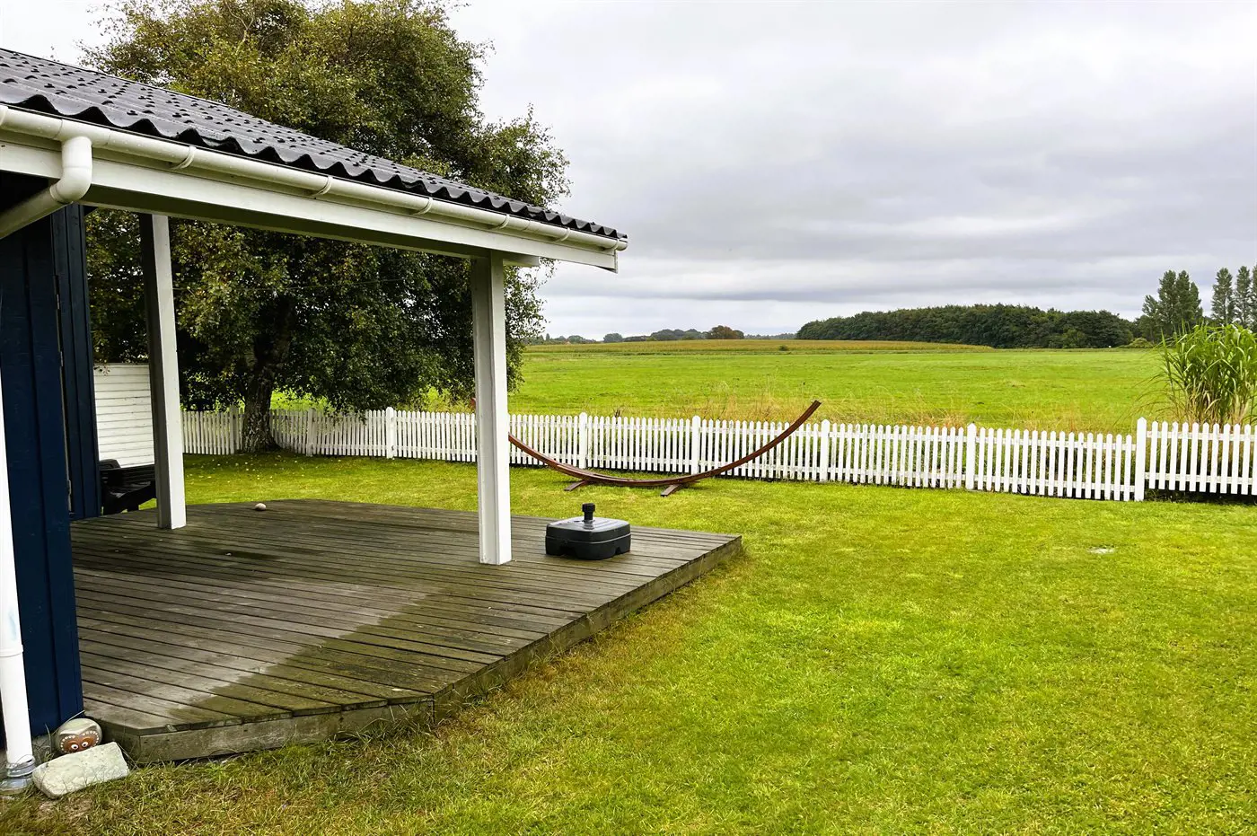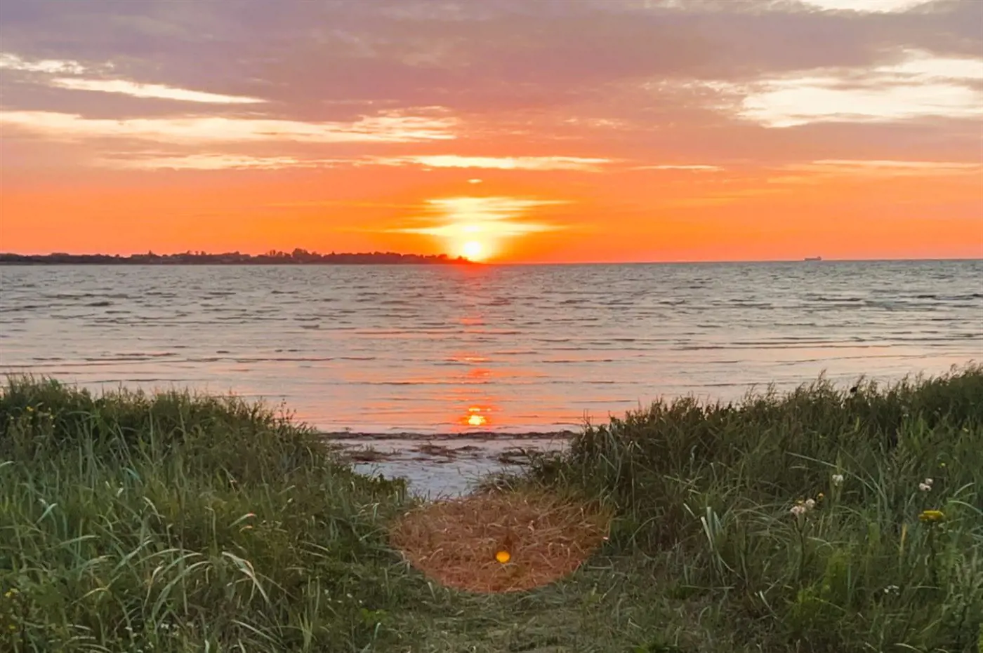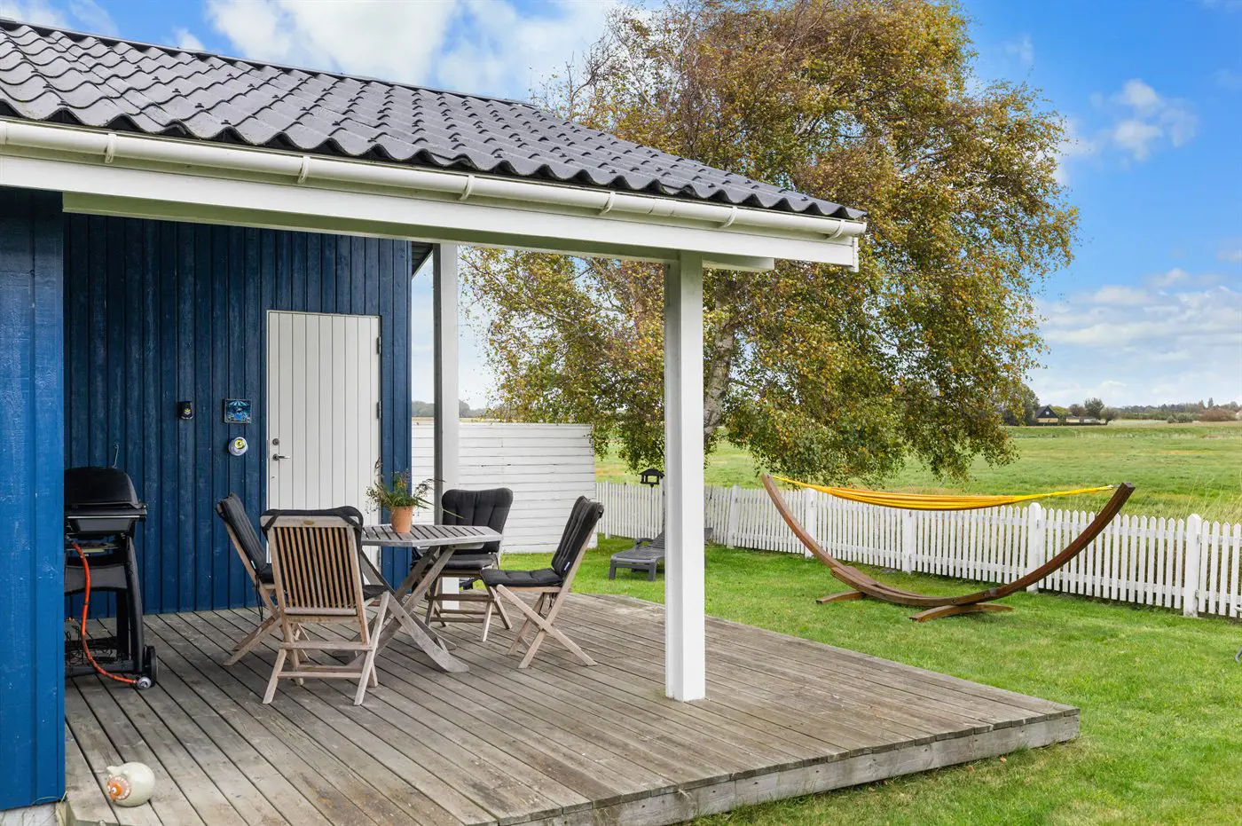 Das Haus liegt in der dritten Reihe, aber dennoch nah am Wasser. Von der ungestörten, nach Südwesten ausgerichteten Terrasse hinter dem Haus habt ihr Blick auf offene Felder. Vor und hinter dem Haus gibt es überdachte Terrassen.