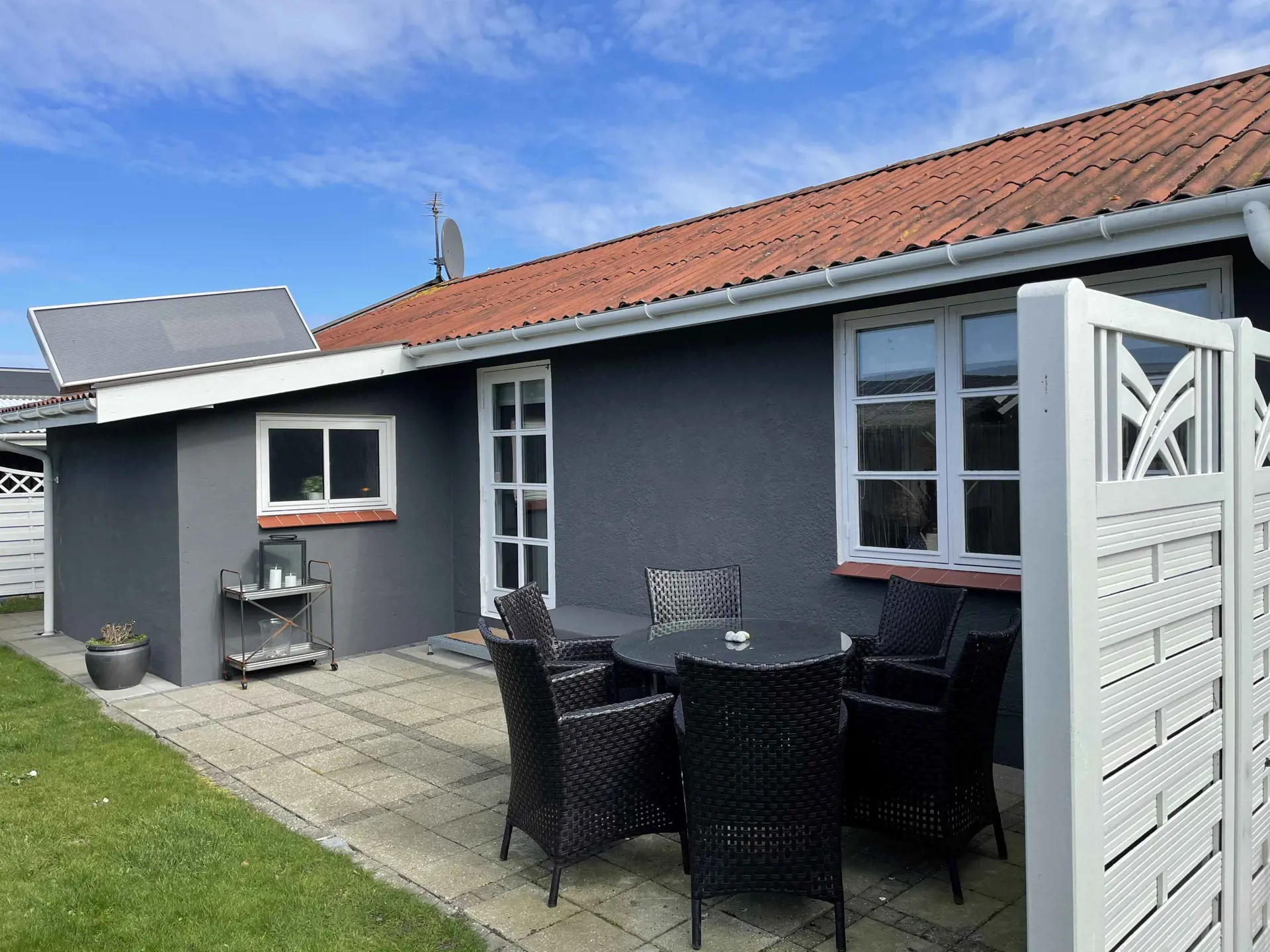 - Terrasse: 1 offen und überdacht