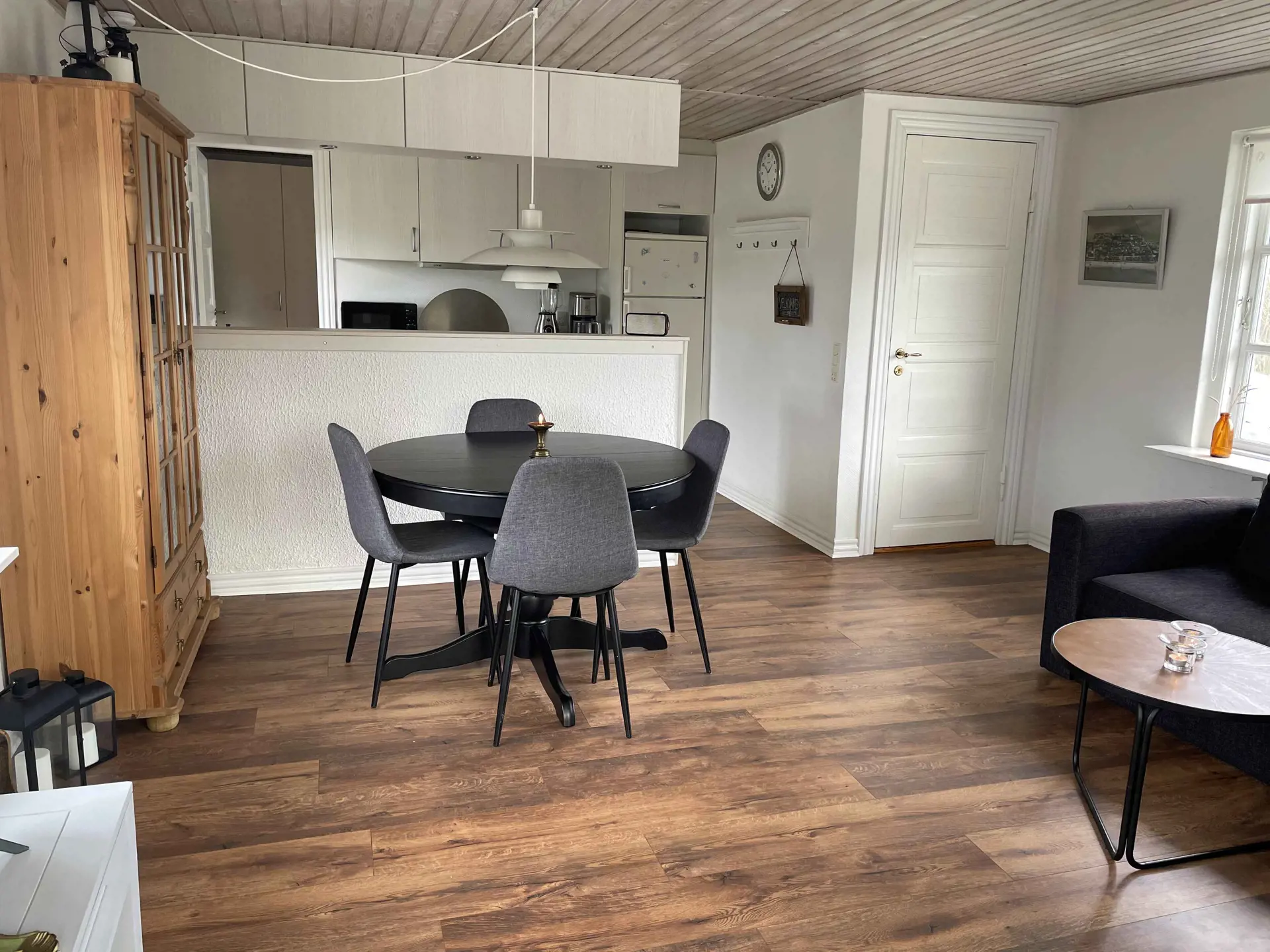 Das Wohnzimmer ist weiß gestrichen und alles sieht hell und freundlich aus. Es gibt Smart TV, damit Sie Kanäle streamen können. In der Küche gibt es einen Herd, einen Kühl- / Gefrierschrank, eine sehr gute Kaffeemaschine, eine Mikrowelle und einen Geschirrspüler. Die Küche hat eine offene Verbindung zum Wohnzimmer, so dass der “Koch” an der Familienhygiene teilnehmen kann - auch während des Kochens.