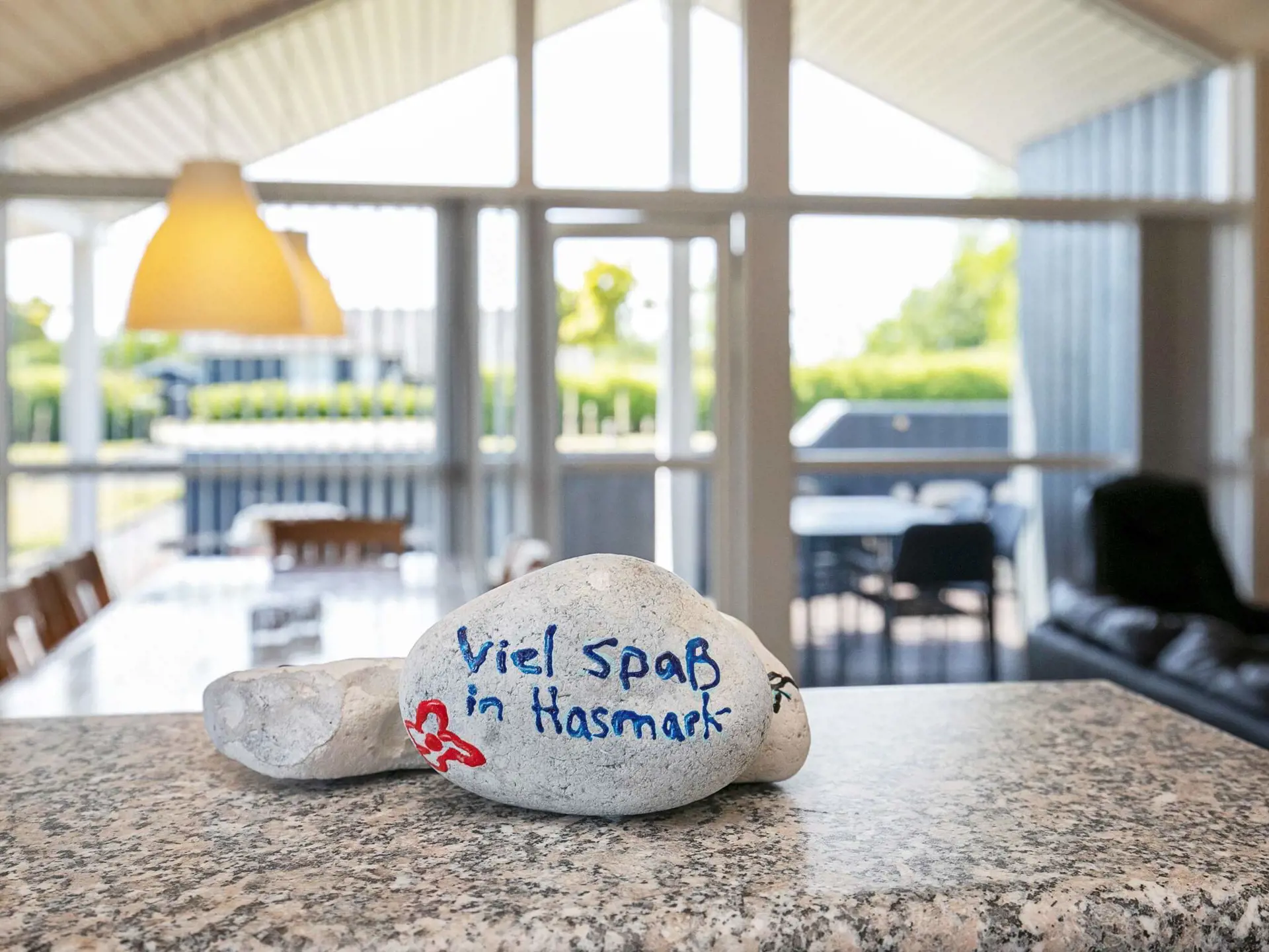In Hasmark, etwa 400 m vom Strand entfernt, liegt dieses Ferienhaus. Beim Bau und der Einrichtung wurde viel Wert darauf gelegt, dass sich das Haus hell und freundlich präsentiert. Das Haus verfügt über drei Schlafzimmer und einen Anneks mit zwei Schlafplätzen. Weiterhin gibt es zwei Bäder, eines davon mit Sauna und Whirlpool, sowie ein großes Wohn-Esszimmer. Vom Wohnzimmer geht es direkt hinaus auf die Terrasse, mit Sitzplätzen zum Entspannen und für gemütliche Grillabende, und weiter auf das 1620 m² große Naturgrundstück, auf dem es Spielmöglichkeiten für die Kinder gibt. Im Garten gibt es eine Feuerstelle.