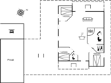 Bitte beachte, dass sich zwei der Schlafplätze auf einem offenen Obergeschoss im Wohnzimmer befinden.
