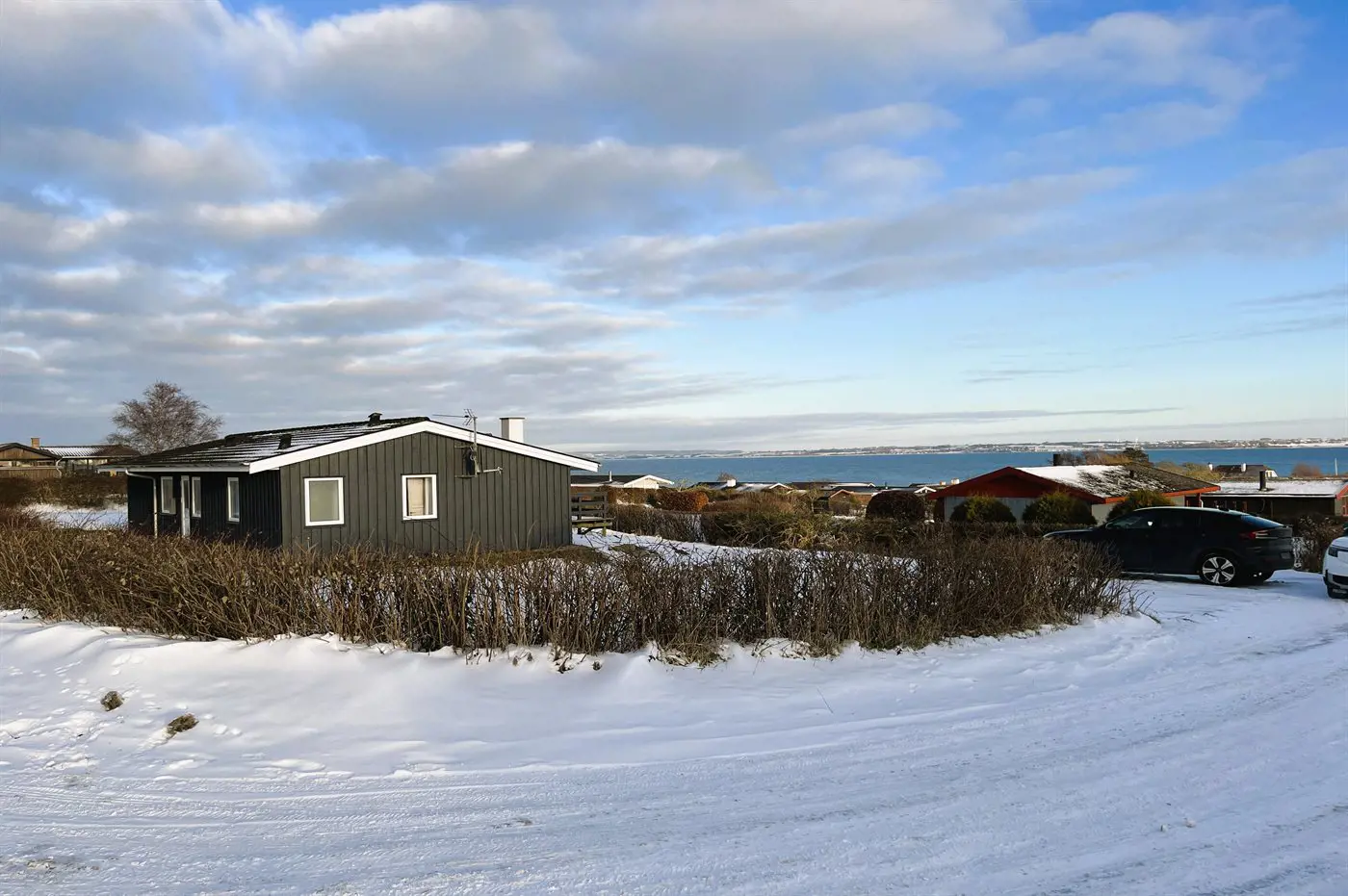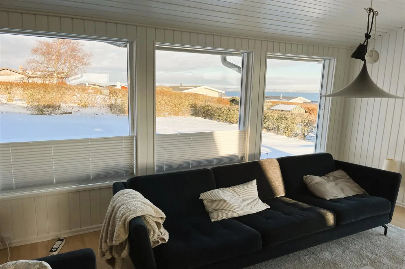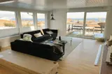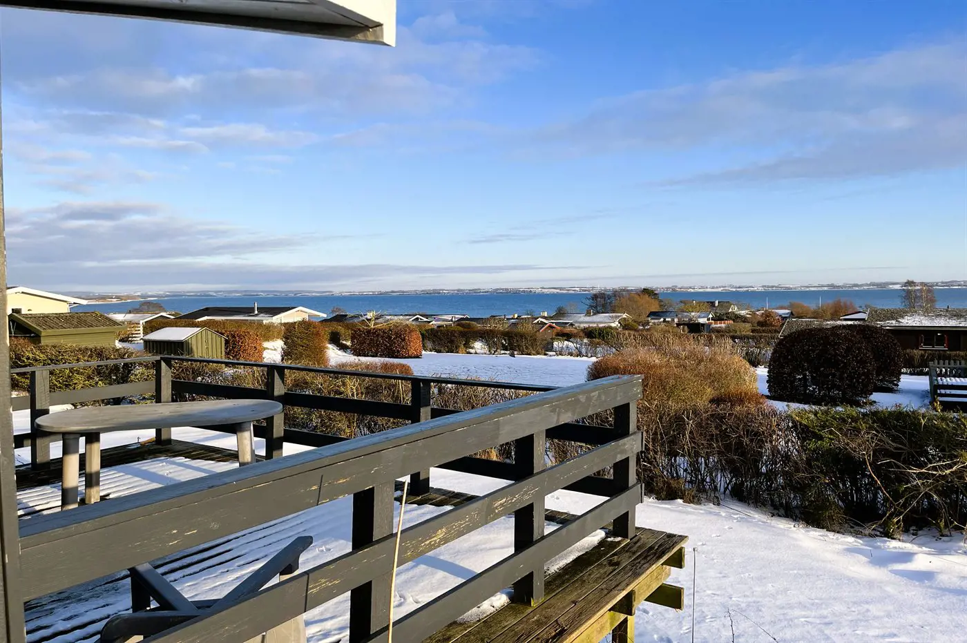 Schönes Ferienhaus mit einer fantastisch schönen Aussicht über das Wasser – sowohl vom Haus als auch von der großen Terrasse vor dem Haus.