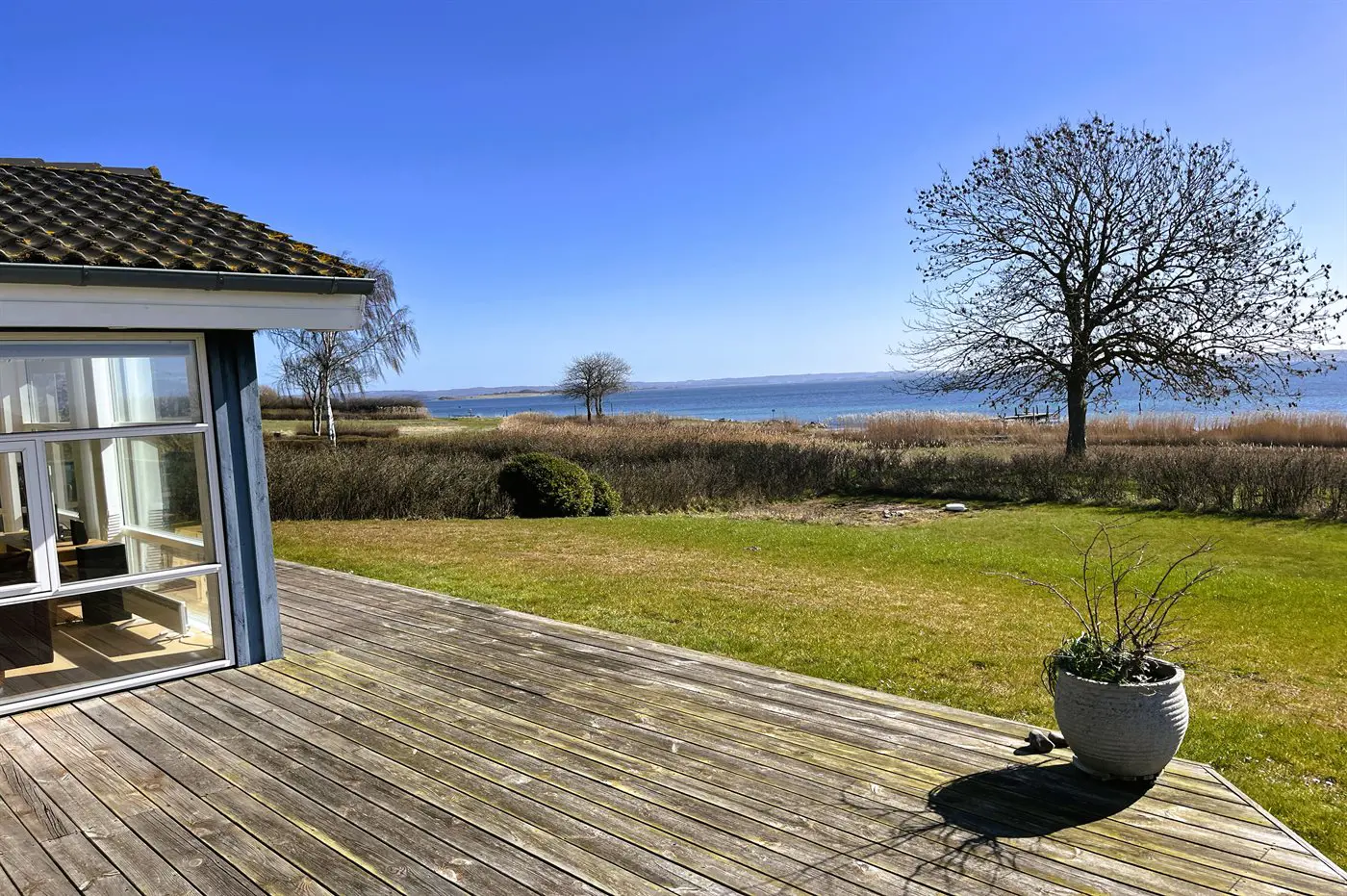 Sowohl vom Haus als auch von der großen Terrasse aus kannst du die Aussicht über das gesamte Gebiet genießen – vom südlichsten Teil der Helnæs-Bucht über Fünen bis hin nach Als.