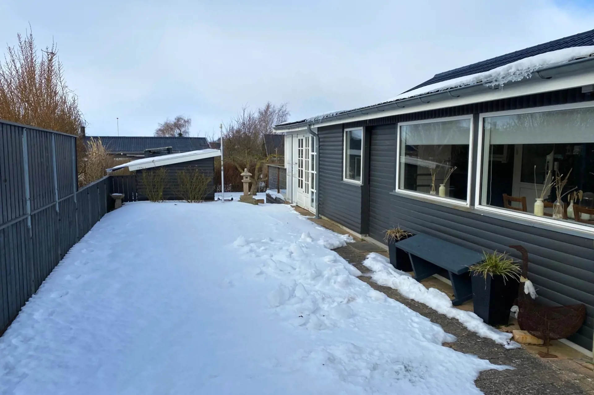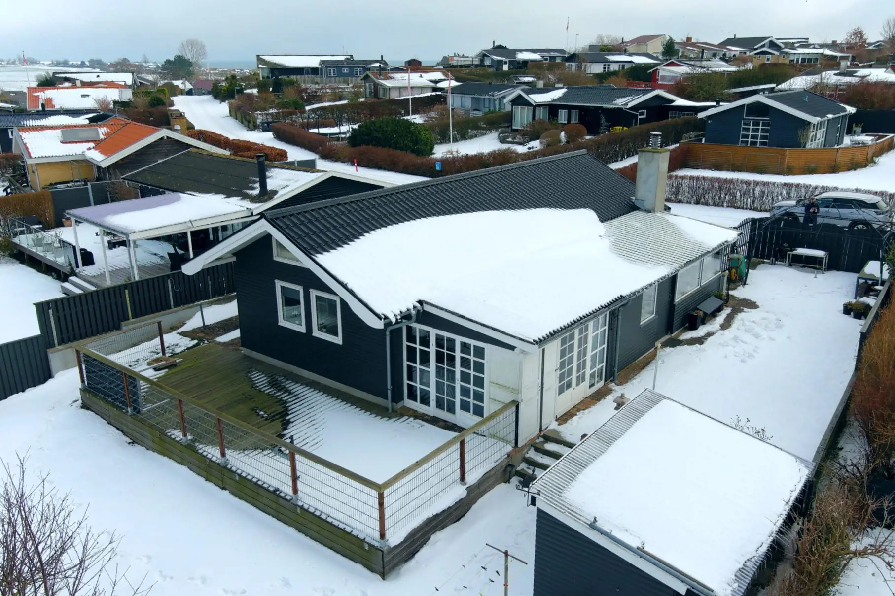 Im Garten erwartet dich eine große, offene Holzterrasse – ideal zum Entspannen, Grillen und Genießen langer Sommertage. Zusätzlich bietet das Haus einen weiteren schönen Wintergarten mit großen Fensterflächen, die bereits im frühen Frühjahr Sonne und Wärme hereinlassen.
