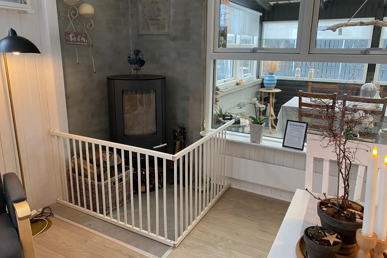 Das Herz des Hauses ist der gemütliche Wohnbereich mit offener Küche. Hier sorgt der Kaminofen an kühleren Tagen für eine warme und stimmungsvolle Atmosphäre. Vom Wohnraum aus hast du direkten Zugang zu einem gemütlichen Wintergarten.