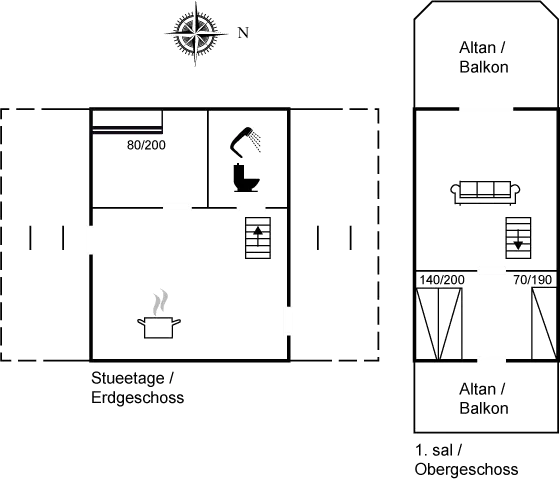 Das Ferienhaus eignet sich für 5 Personen. 1 Schlafplatz eignet sich jedoch nur für größere Kinder (4-11 Jahre). Die Ferienunterkunft hat eine Wohnfläche von 70 m², ist 2-stöckig, und wurde 1971 gebaut. 1995 wurde die Ferienunterkunft renoviert. Es ist erlaubt 2 Haustiere mitzubringen. Die Ferienunterkunft ist mit einer energiefreundlichen Luft-Luft-Wärmepumpe ausgestattet. Die Ferienunterkunft ist mit Waschmaschine ausgestattet. Tiefkühlmöglichkeit mit 50 Liter Nutzinhalt. Es gibt außerdem einen Kaminofen.