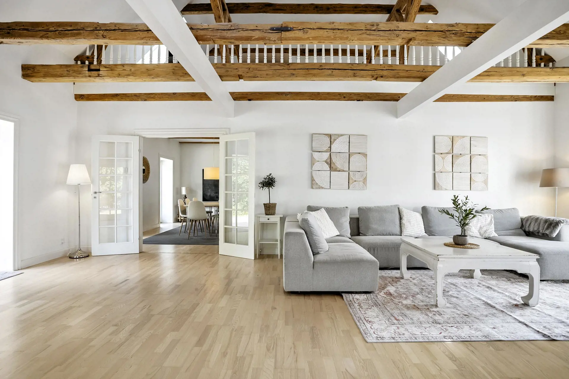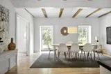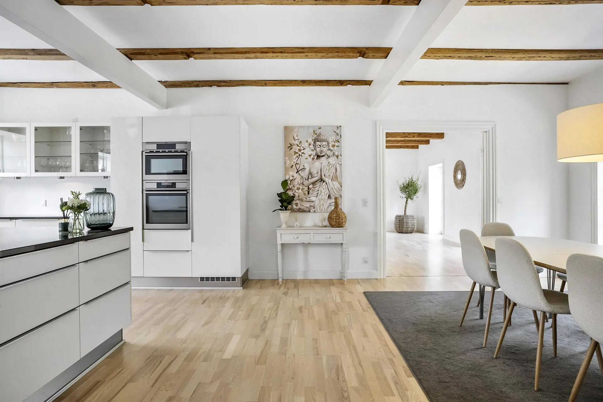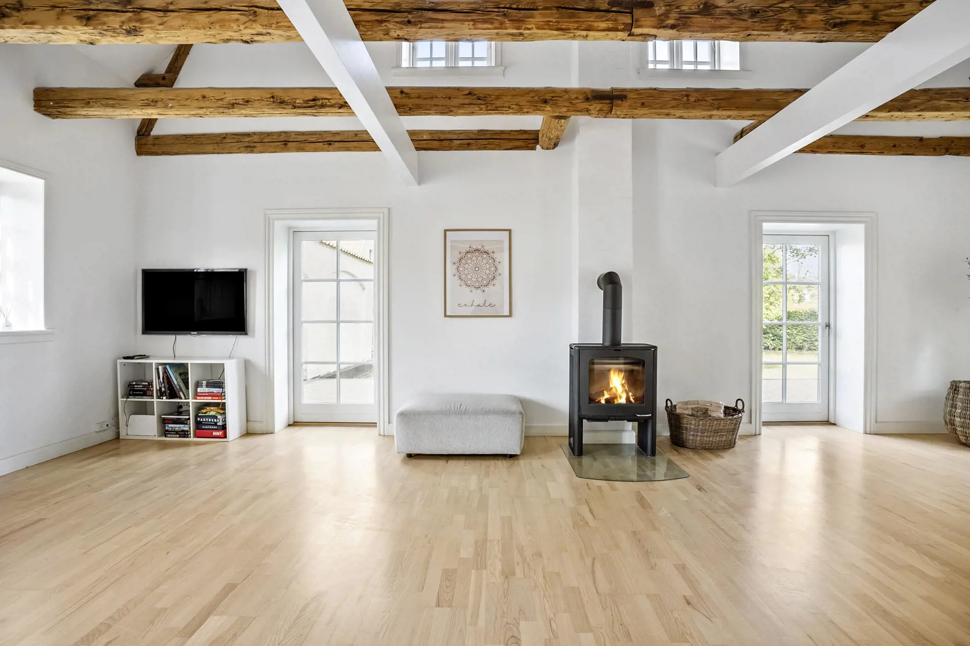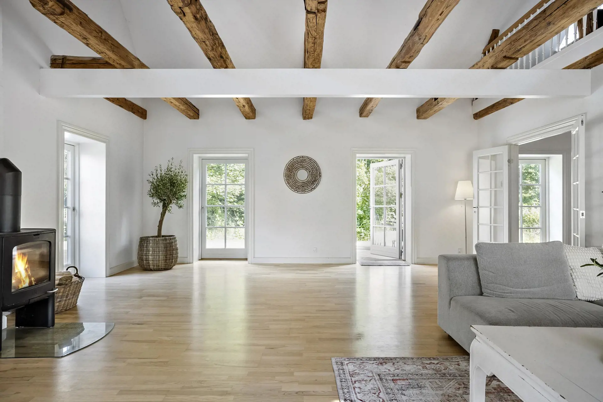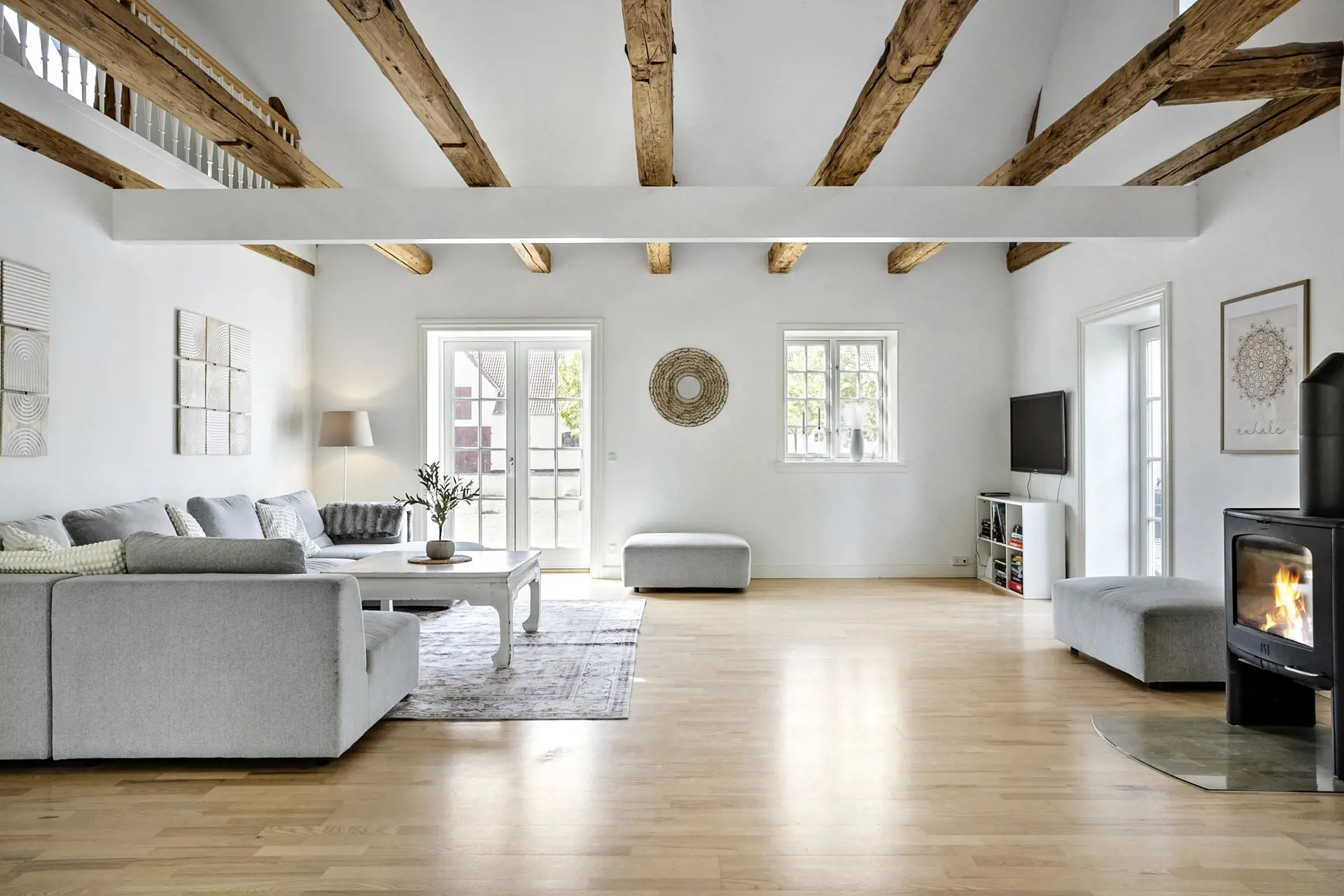 Die große, offene Wohnküche mit einem Essbereich für 12 Personen ist der ideale Treffpunkt für gemeinsame Mahlzeiten und gemütliche Stunden. Das geräumige Wohnzimmer mit bequemen Sofa-Arrangements und einem warmen Kaminofen schafft eine einladende Atmosphäre, in der Sie nach einem erlebnisreichen Tag entspannen können.