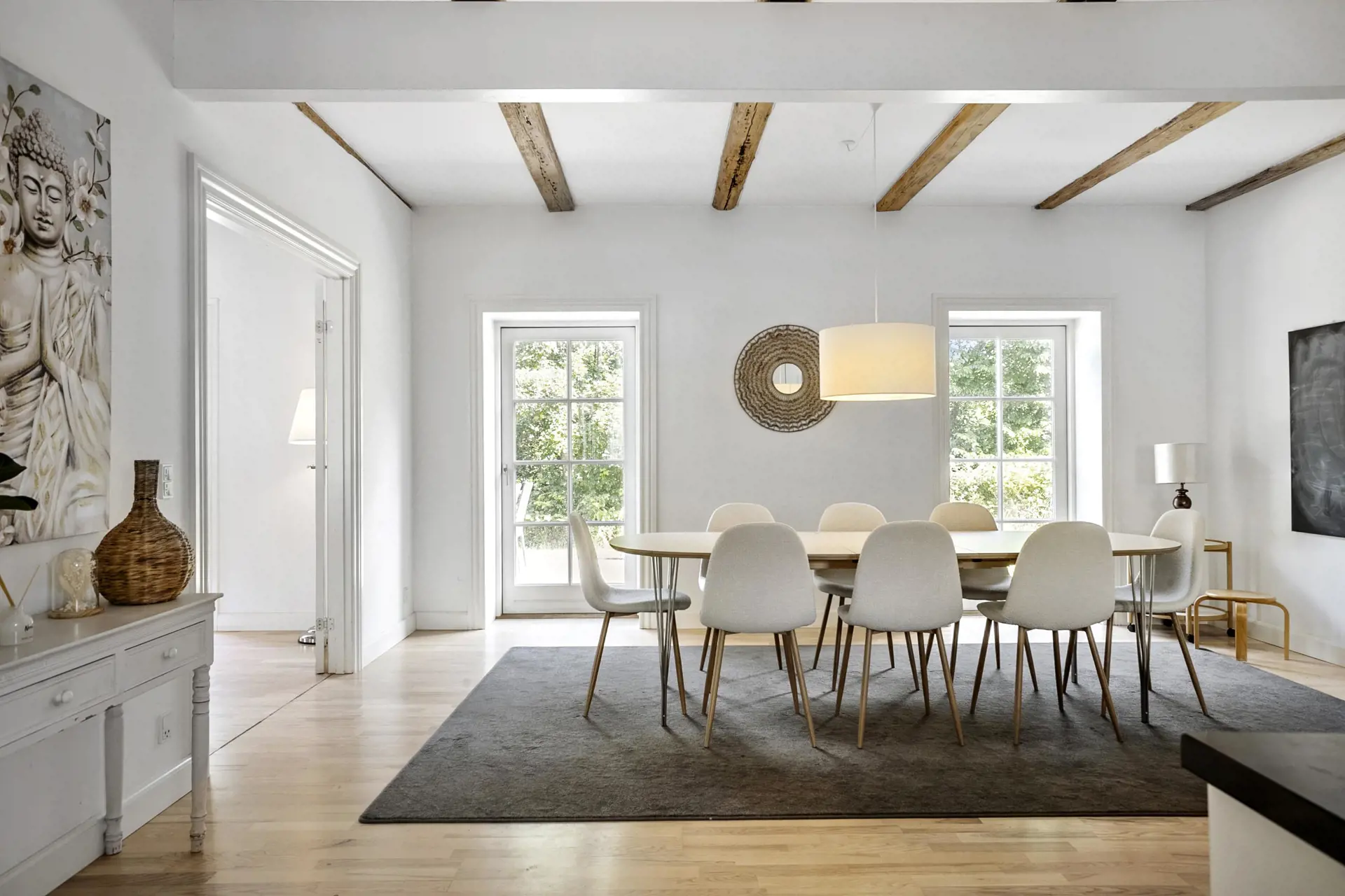 Das Pächterhaus auf Gut Hindemae bietet ein 160 m² gemütliche und funktionale Unterkunft an, ideal für einen entspannten Familienurlaub oder einen längeren Aufenthalt. Zuvor wohnte der Pächter des Anwesens in dem Haus. Jetzt bietet es alles an was Sie brauchen, um sich in der wunderschönen Umgebung zu Hause zu fühlen.